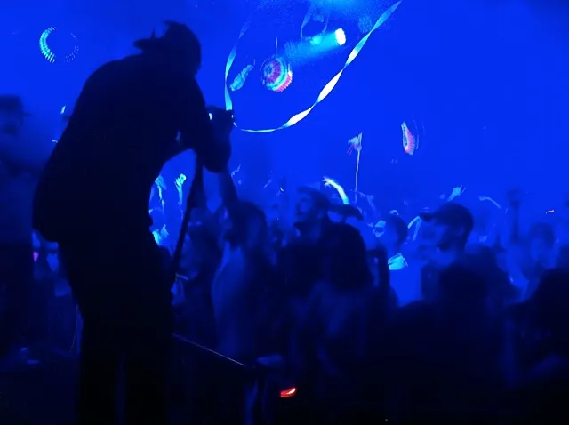 We hebben een taxi gepakt naar het Bromance feest ergens anders downtown. Binnen stond de muziek schel hard en was het leeg. Buiten op de binnenplaats was het aangenamer. Er waren veel ‘mensen die er toe deden’, daardoor kwam het moeilijk los. Want ‘mensen die er toe doen’ praten met elkaar of staan druk te communiceren via hun Blackberry of iPhone. Maar het was goed weer lol te trappen met bekenden van over de hele wereld. Ik kwam MC Kinky tegen. Ooit in de jaren van de acid-house beroemd om haar hit ‘Everything Starts With An E’ en al haar werk met Erasure en Boy George. Tegenwoordig maakt ze moombahton en fotografeert ze op hoog niveau. Haar werk was onder andere te zien op de Biënnale van Venetië. We zijn sinds 1988, toen ze voor ons optrad in de RoXY, bevriend gebleven. Ik heb een foto van haar en haar vriendin Liz gemaakt, staande voor een hekwerk. Een seconde na het schieten van het plaatje rolde er een ander hek over een rails haar kant op. Op die rails had ze toevallig haar hand liggen. Het stalen wiel sneed in haar vingers, het bloed spoot eruit. We zijn naar de bar gerend vragend om hulp en kregen een chagrijnige blik, een vieze handdoek en een stapel servetjes.