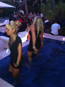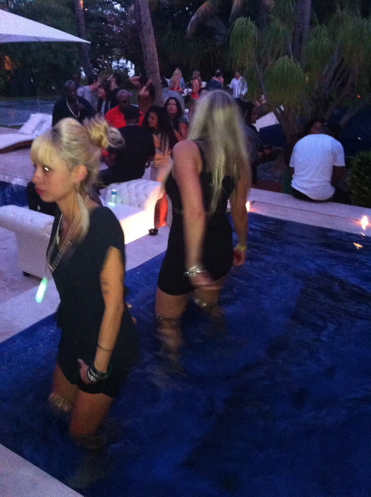 Er liepen wat oudere mannen die even leken op de Rolling Stones, maar ze waren het niet, bleek later. Felix Da Housecat ging draaien: Laurie Anderson ‘Oh Superman’, Rolling Stones ‘Emotional Rescue’, Jefferson Airplane’s ‘White Rabbit’ en wat Prince en Salsoul disco. Helemaal te gek voor zo’n über-happy-few feestje maar de stemming kwam er niet echt in. Men keek verveeld tot zelf chagrijnig leek het. Misschien lag het aan mij? Mijn vrienden zaten opeen gehoopt op een paar banken en zeiden niets, staarden voor zich uit. Achter hen in een van de vele kleinere zwembaden stonden twee geelgeblondeerde dames met zwarte jurkjes wat verveeld te bewegen. Hoogstwaarschijnlijk ingehuurd. De enige die het naar zijn zin had was Rory Phillips, die was zo tipsy van de champagne dat hij alleen nog maar lettergrepen zonder enige articulatie kon uitbrengen. Leukste gesprek dat ik hoorde: ‘OMG, you look like, like European!’ De man antwoordde: ‘ No I’m from England.’ Waarop ze zei: ’Oh wow, what language do they speak there?’. Ik bedoel maar...