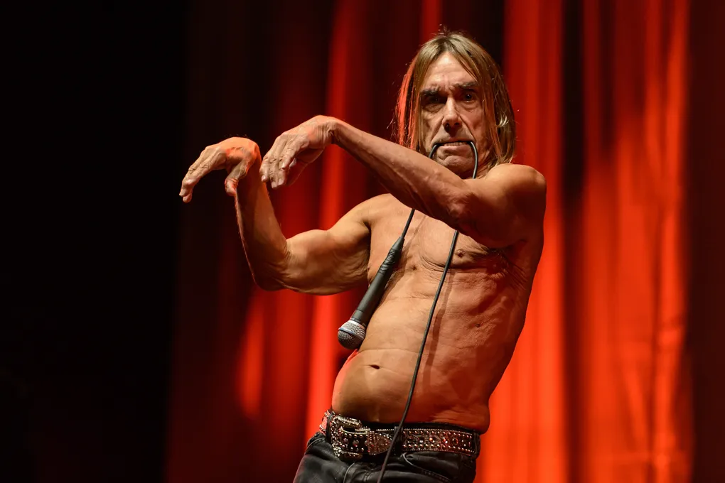 Al het tweede liedje gaat het jasje uit om zijn pezige, gehavende 69-jarige slangenlichaam te tonen, en al gauw krioelt en duikelt Iggy Pop over het podium. ‘I’ve got lust for life!’, gromt hij. In alles brengt vanavond Iggy Pop een ode aan het leven, en dat met een bijzondere all-star band achter zich: beest van een drummer Matt Heldens (Arctic Monkeys) zit in de hoek, en verder telt het podium maar liefst dríé leden van Queens of the Stone Age. Natuurlijk ook frontman Josh Homme, die zich vanavond sierlijk schikt als achtergrondgitarist en de laatste plaat van Iggy Pop produceerde: Post Pop Depression. Naast wat werk van die plaat is dit vooral een grootse hit-show met klassiekers als Passenger, Lust For Life en China Girl. Toch is het een nieuwe song die vanavond het absolute hoogtepunt vormt: Paraguay, met een lompe bezwerende gitaarriff en een langgerekte tirade van Iggy zelf over al die angstige mensen die hij zat is, al die kritiek. Hij gaat liever wonen op Paraguay om een kleine eigen sekte te starten.