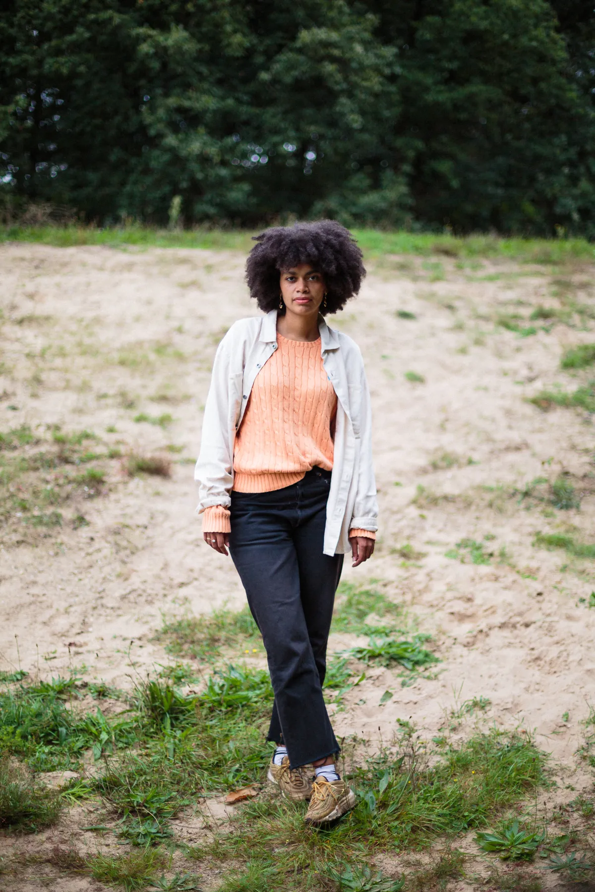 ‘I don’t ever need to be anything / as long as I can be anything’, zuchtzingt Joya Mooi (28) over een wolkje van een trapbeat in het nummer ‘Rice in Foil’. En even later: ‘What you try to see / just don’t understand it all.’ Het is de opening van haar fraaie, superpersoonlijke album The Ease of Others, waarop ze haar familierelaties onderzoekt en laat zien hoe complex biculturaliteit is. Ze is een witte vrouw uit Deventer, maar ook een vrouw van kleur met wortels in Zuid-Afrika. Haar klasgenootjes wisten haar niet te plaatsen. Ook haar witte moeder zal nooit helemaal begrijpen waar ze mee worstelt, haar zwarte vader evenmin. Ze is een bruin vlekje in een witte zee. Of nee, toch een wolkje melk in een kop zwarte thee? Kun je dan ooit helemaal ergens toe behoren? ‘Dat is een eeuwig verlangen’, vertelt Joya terwijl we over de Hilversumse hei slenteren (ze had net een kort interview op Radio 1), ‘dat je bij een groter clubje mensen hoort. Op het oog hebben die mensen een gemakkelijker leven. Dat is The Ease of Others voor mij. En tegelijkertijd wil je toch ook het leven van je buurvrouw helemaal niet.’