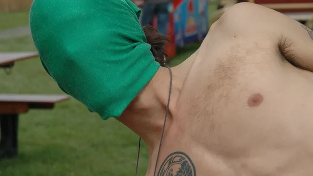Justin Nozuka heeft geen problemen met het uitkiezen van een geschikt masker. Zijn groene shirt wordt al snel om zijn hoofd geknoopt. 'Do I look cool'? Groen blijkt een goede keuze te zijn voor Nozuka met zijn voorliefde voor de natuur en een jointje.