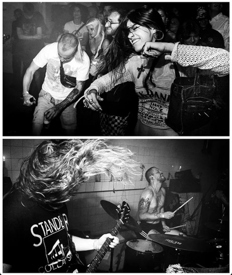 Neem de zogenaamde heksensabbats. ‘Het ging altijd over vliegende heksen op bezemstelen, met een pot soep. Maar dat waren gewoon momenten waarop mensen samenkwamen om te praten, om zich te organiseren, die bespraken: “Hoe gaan we dit overleven? Hoe kunnen we in protest?”’, zegt Hoorweg. ‘Workers’ unions eigenlijk, maar dan ’s nachts, omdat het anders niet kon.’ Eigenlijk is Roadburn ook zo’n samenkomst van buitenbeentjes, oefenen hoe het anders zou kunnen. ‘Ik zie Roadburn echt als een sabbat’, zegt die. ‘Als een moment waarop we samenkomen, een act of resistance in deze verschrikkelijke tijd, om te rouwen, te schreeuwen, te lachen. Ik zag laatst een interview met Sophie Straat over Protestfest. Het ging over de kritiek dat het “preaching to the choir” is, maar fuck it, waarom is dat erg? Het is zó belangrijk om je momenten te nemen om met je mensen te zijn, samen een betere toekomst te verbeelden, te durven dromen over een wereld zonder gevangenissen, zonder genocide, zonder grenzen. Zo ontstaat de mooiste muziek, en juist door samen te komen kun je vermenigvuldigen. Het is besmettelijk.’