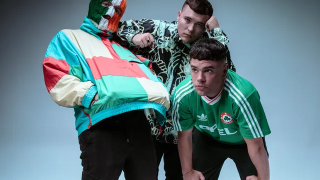 DJ Próvaí zit te zweten. De Amerikaanse tour zit erop, en hij is met zijn gezin voor een korte vakantie op de Canarische Eilanden geland. Ondanks de dertig graden verschijnt hij in de zoomcall mét zijn Ierse vlag-balaclava op zijn hoofd: ‘Deel van de persona, hè! Zoals Batman.’ De klamme oren neemt hij op de koop toe. Dan verschijnt ook Móglaí Bap op het scherm. ‘Ik ben in Tenerife’, grapt hij, terwijl hij zijn laptop omdraait zodat we de grijze lucht boven Belfast kunnen zien. Uit Gran Canaria arriveert een lachsalvo, met een paar seconden vertraging.