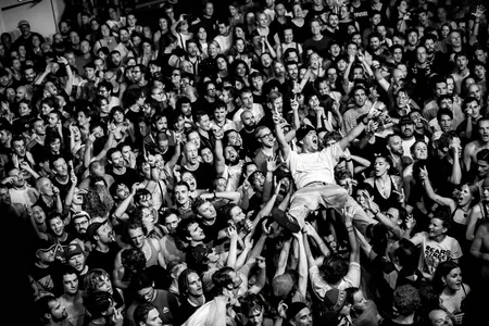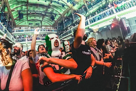 In de afgeladen Grote Zaal hangt een losbandige en euforische sfeer. De Ierse vlag op het rechter balkon en de Palestijnse aan de overkant kunnen al voor aanvang rekenen op luid applaus en gejoel. Als de rappers op het podium verschijnen duurt de warming-up een paar nummers, maar vanaf ‘Better Way To Live’ gaat de vlam in de pan. De zaal is zo gewillig als maar kan, en behoeft maar weinig commando’s om te moshen, te hossen en een feestje te bouwen. DJ Próvaí smijt zijn ongepolijste boom bap en housebeats de zaal in, en vooral Mo Chara – hoodie, zonnebril, warm! – spreidt zijn indrukwekkende rap skills tentoon. Politiek geëngageerd of niet: wie de grotendeels Ierstalige rapteksten verstaat, leert vooral veel over lijntjes ketamine en de teleurstellende kwaliteit van Britse politiehonden.