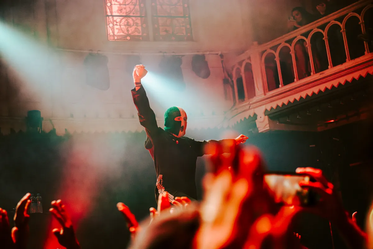 Daarna kan het echt niet meer stuk. Tijdens gouden oude ‘C.E.A.R.T.A’ en publieksfavoriet ‘H.O.O.D’ trilt de zaal vervaarlijk mee, en met drum ‘n bass sloopkogel ‘The Recap’ plaatst Kneecap een dikgedrukt uitroepteken achter de setlist. DJ Próvaí verdwijnt in de moshpit, net als zijn aanwezige copycats met identieke balaclavas in de Ierse driekleur. Bandshirts, voetbalshirts en ‘Free Mo Chara’-shirts: ze zijn allemaal even doordrenkt van bier en zweet. Een arme recensent krijgt een halve liter in zijn nek gegoten, en zelfs nadat Kneecap van het podium verdwijnt, blijft het publiek nog lang nahossen op een republikeins strijdlied van The Wolfe Tones.