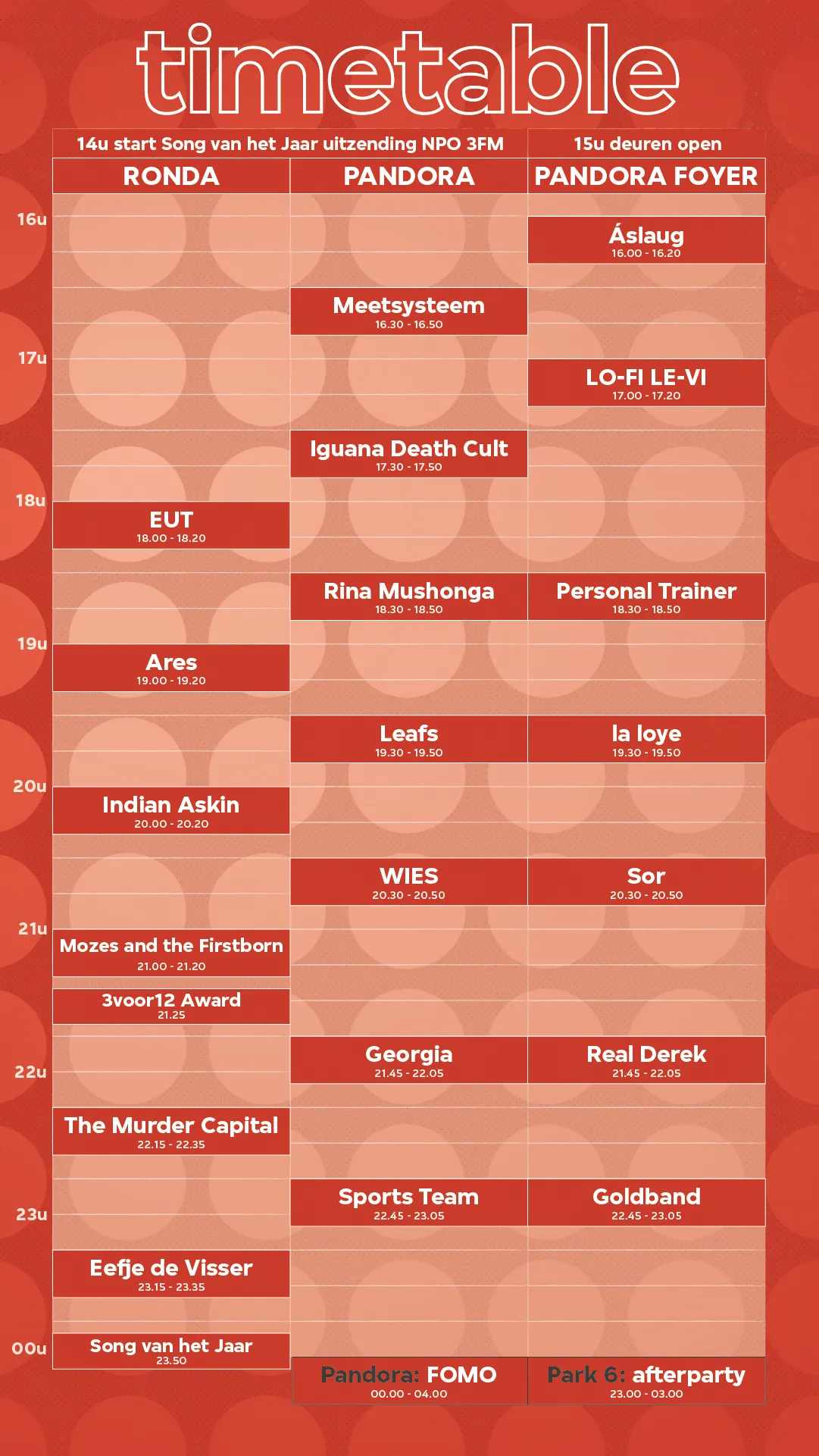 Eefje de Visser, Sports Team, EUT, The Murder Capital, Mozes and the Firstborn, Leafs, WIES, Ares, Indian Askin, Goldband, Georgia, Rina Mushonga, Iguana Death Cult, Real Derek, Aslaug, Sor, Personal Trainer, la loye, Meetsysteem en LO-FI LE-VI.