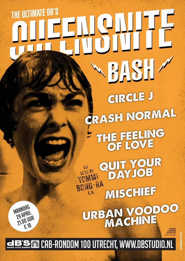 dB's in Utrecht pakt altijd uit met Koninginnenacht, dit jaar komen het Britse Urban Voodoo Machine, de Franse garagerockers The Feeling Of Love, de Zweedse electropunkers Quit Your Dayjob, Utrecht folkpunkers Circle J., rockabillyband Mischief!, het Franse Crash Normal en dj's Tommi en Bong-Ra.