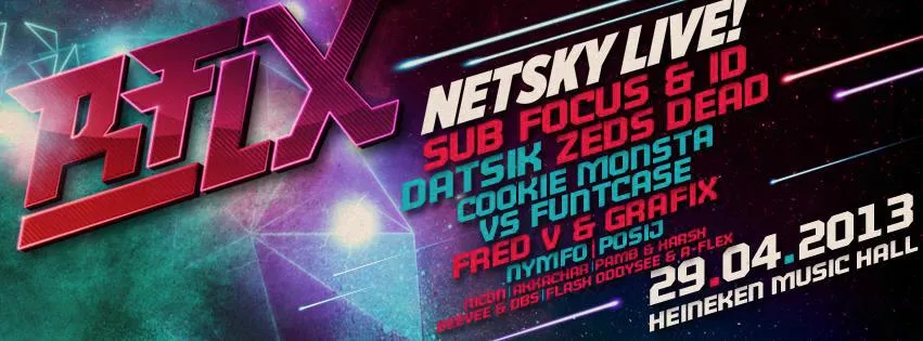 Groot nieuw festival voor bass music, drum 'n bass en dubstep in de bierhal in Zuid-Oost. De line-up is geen kattenpis: Netsky (live), Sub Focus & ID, Datsik, Zeds Dead, Cookie Monsta vs Funtcase, Fred V & Grafix, Nymfo, Posij, Nicon, Akkachar, BeeVee & DBS, Flash Oddysee & A-Flex, Pamb & Harsh.