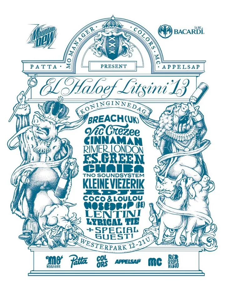 Ook overdag kun je tekeergaan bij het MC Theater en wel in de buitenlucht en helemaal gratis. Appelsap x Patta x Colors Amsterdam x Mo Manager x MC Theater = een line-up met o.a. Breach (UK), Vic Crezee, Rimer London, Cinnaman, FS Green, Adje (live), Kleine Viezerik (Live) en Nosedrip (BE).