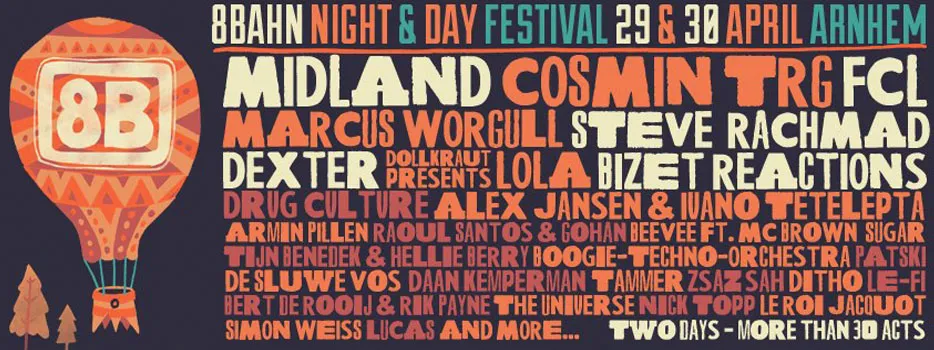 8Bahn was een dance-festival in Ede, maar huist nu al even in Arnhem. Voor de vijfde maal wordt het Musispark betrokken, Musis Sacrum neemt ook deel en er is een heuse 8Bahn vrijmarkt. Twee dagen lang, helemaal gratis en de line-up ziet er deels zo uit: Bizet Reactions, Midland, Cosmin TRG, Steve Rachmad, Drvgcvltvre Soundsystem, Red-D & San Soda, Marcuss Worgull en Dollkraut presents Lola Live.