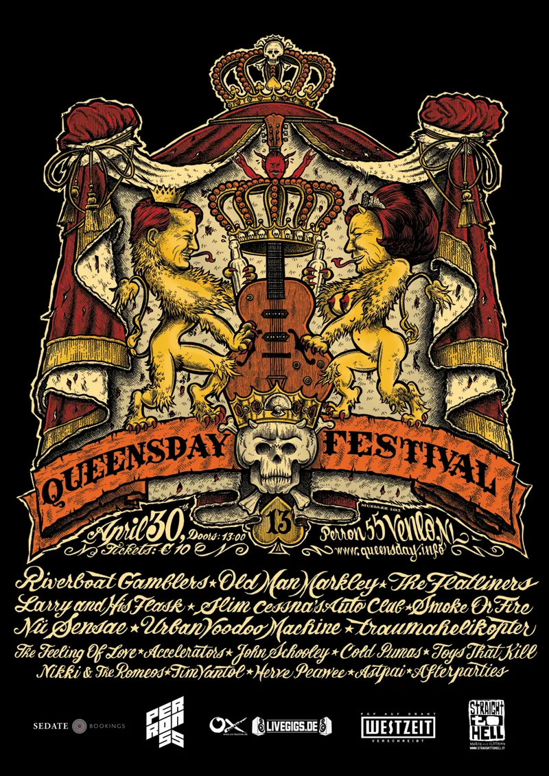 Ook een hele fijne traditie is het Queensday Festival bij Perron55. In Venlo mikken ze meer op het betere gitaarwerk, verwacht garage, punk, rock 'n roll en rockabilly van o.a. Riverboat Gamblers, Slim Cessna's Auto Club, Traumahelikopter, Old Man Markley, Urban Voodoo Machine, Feeling Of Love, Smoke On Fire, Accelerators en The Flatliners.