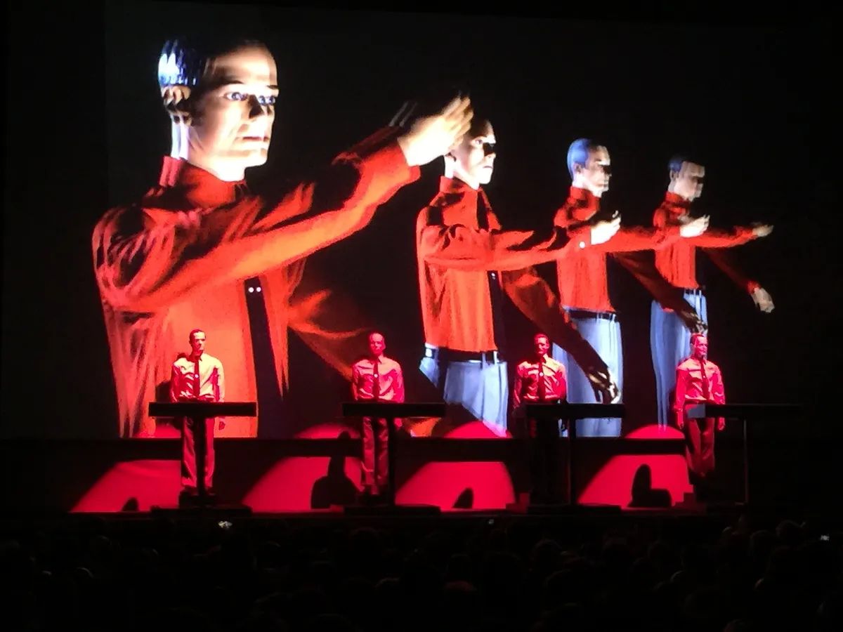 Als het doek omhoog gaat hangen drie woorden levensgroot en autoritair middenin de zaal: Man, Mensch, Machine. Het album “Die Mensch-Machine”, “The Man-Machine” uit 1978 vat de kern van Kraftwerk samen. Maar verwijst ook naar het communistisch ideaal van collectiviteit. Waarvan nooit helemaal duidelijk is geworden of Kraftwerk het in die tijd ideologisch aanhing, maar in ieder geval wel esthetisch. De hoes van het album en de singles ervan zijn sterk geïnspireerd op het Russisch constructivisme, de typografie van Alexander Rodchenko, de grafiek en de maquettes van El Lissitzky. De thematiek ligt in het verlengde van een film als Metropolis van Fritz Lang uit 1927 en als een boek als 1984 van George Orwell uit 1949. Ralf Hütter en Florian Schneider hebben veel met beeldende kunst. Waar een andere willekeurige groep voor een optreden zo snel mogelijk de dichtstbijzijnde koffieshop induikt gaan zij naar het museum. Ze komen al vroeg in aanraking met werk van het Engelse kunstenaars- en performanceduo Gilbert & George die ze heel erg bewonderen. Düsseldorf is in de jaren zeventig een vooraanstaand kunstcentrum met veel musea en galeries, en een kunstacademie waar les wordt gegeven door een van de belangrijkste Europese kunstenaars van dat moment, Joseph Beuys.
