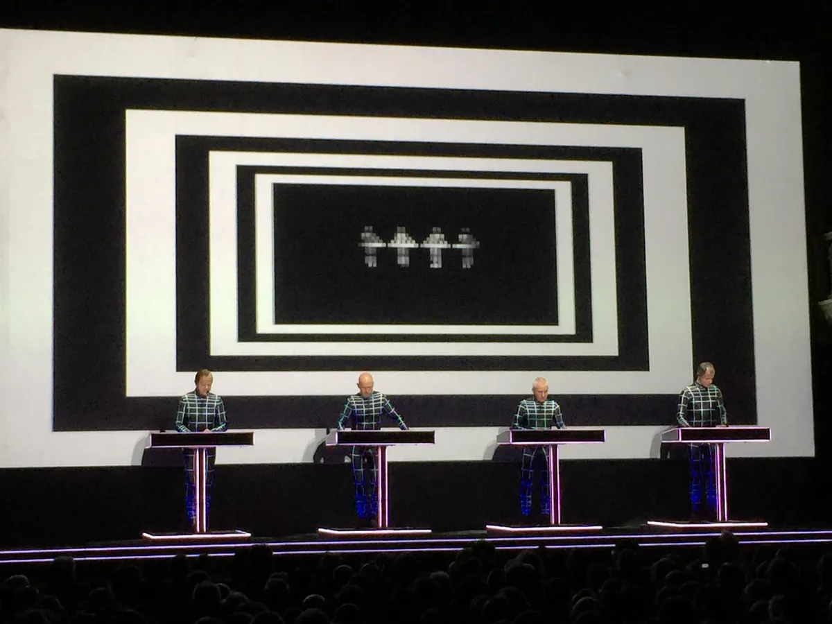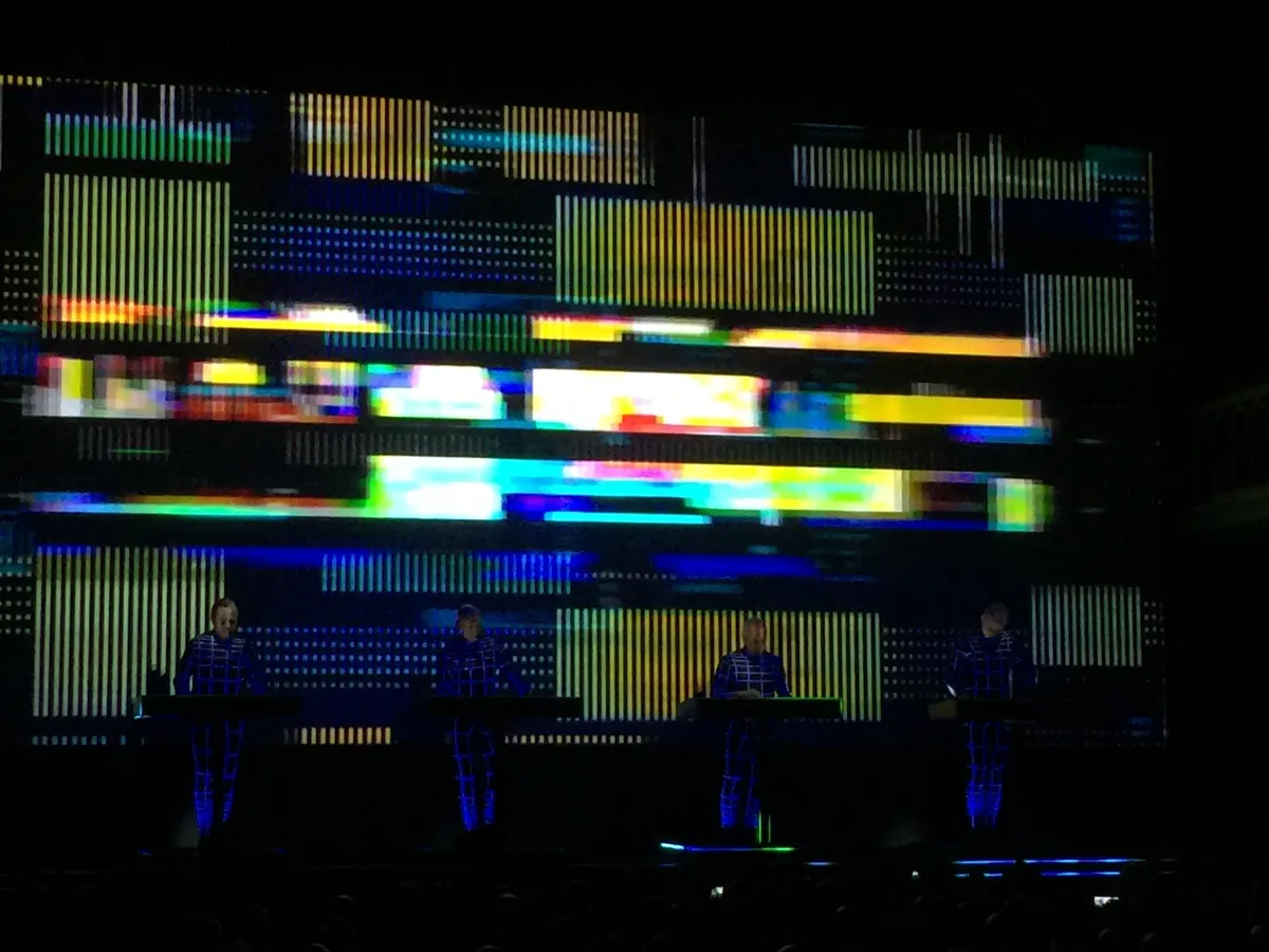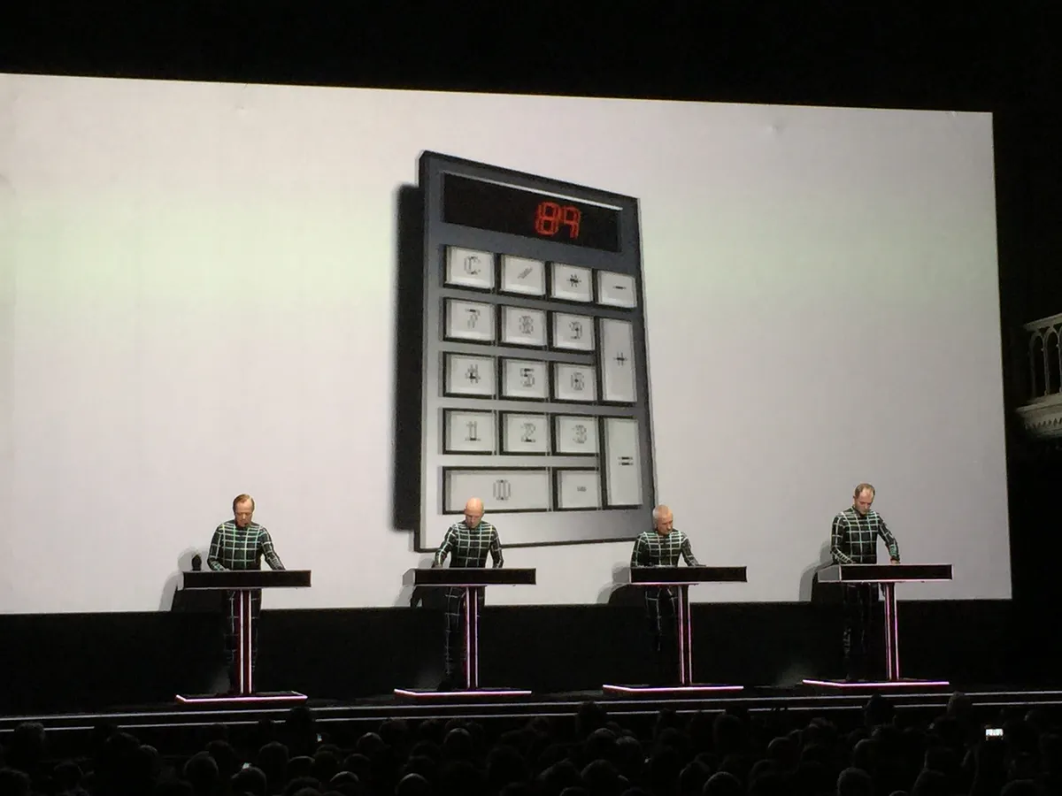 Met opmerkelijk genoeg een zowel muzikaal als visueel zwakke uitvoering van het enige nummer van Computerworld dat ik de afgelopen vier dagen nog niet eerder heb gehoord, Pocket Calculator. Een iel geluid, een statische projectie van een ouderwetse zakjapanner. Dat was anders in 1981 in Vredenburg in Utrecht toen Hütter, Schneider, Bartos en Flür in de toegift naast hun etalagepopdubbelgangers op de rand van het podium stonden te swingen met elk een pocketcalculator in hun hand waarop ook het publiek geluiden mocht maken. Die herinnering kreeg ik vanavond niet uit mijn hoofd. Ook andere herinneringen aan dat concert niet. En aan de dagen hiervoor. Want er gebeurde chemisch gezien niks bij me vanavond. Cold turkey na de trip van gisteren?