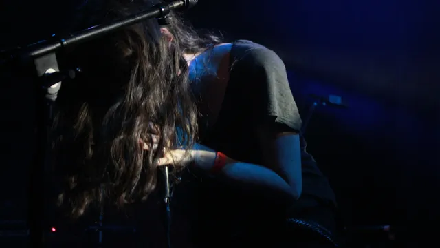 Het is een tegenstrijdig beeld: de onschuldig uitziende Palladino die zodra ze haar strot opentrekt de Apocalypse over zich afroept. Een donkere, wat maniakale vibrato verschuilt zich in haar stem alsof ze haar ziel aan de duivel heeft moeten verkopen voor een filmrol en nu in zijn dienst muziek moet maken. Church neemt de belangrijkste geluiden voor zijn rekening; afwisselend trekt hij met zijn gitaar bombastische muren op of zet hij een meedeinbare beat neer met zijn drumpad. Beginnend op een synthesizer wisselt ze na een aantal nummers haar instrument in voor een gitaar, waarmee ze haar droomvolle geluid extra kracht bijzet met snel echoënde noten. Voor het slotstuk duikt zij zelfs naar de grond om met een extra effectenbak haar vocalen elke hoek van de zaal door te draaien.