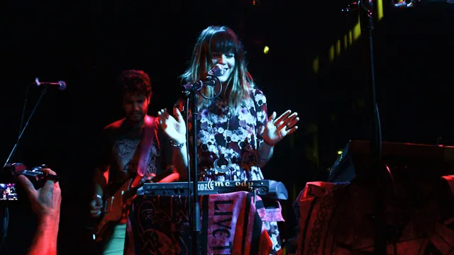 Hee, waar is die drummer eigenlijk gebleven? Er is geen drummer? Je zou het bijna vergeten omdat die drums zo analoog klinken (nee, omdat je toch de hele tijd naar Prochet kijkt), maar ze komen uit een doosje en dat voelt een beetje nep bij zo'n spacey rockband. Hoe spontaan het ook lijkt, al improviserend een kwartiertje in de groove blijven hangen is er zo niet bij. Verder worden die vrolijke dansjes af en toe iets te veel van het goede. Daarmee huppelt de band op twee gedachten: het moet psychedelisch en gevaarlijk lijken, maar toch blijft Melody's Echo Chamber de hele show lang wat aaibaar.