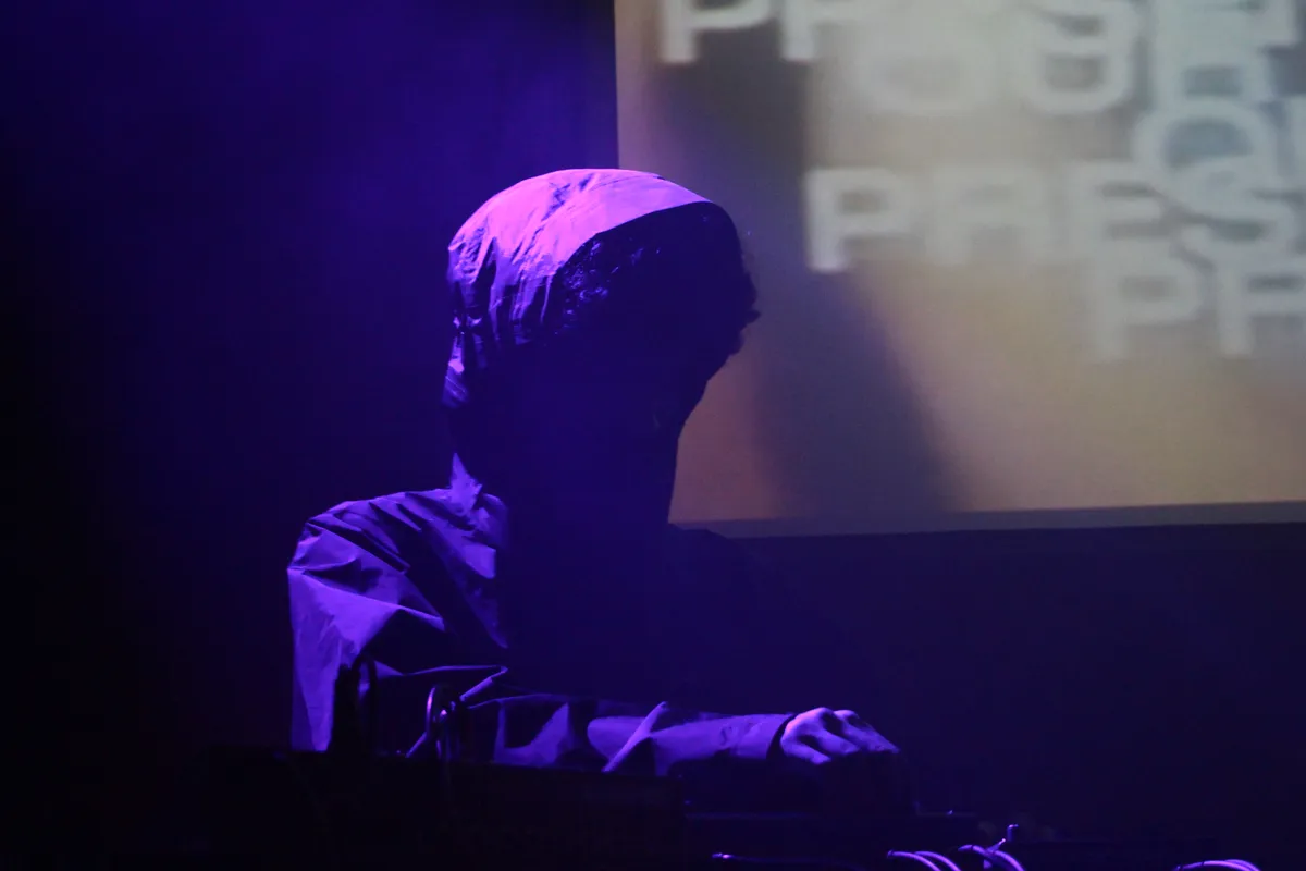 Vooral Wiki gooit zich er vol overtuiging in. Het podium lijkt te klein voor zijn gezwaai en gespring. Dat dit niet zijn eerste show is waar hij op zo’n drukke wijze zijn act opvoert is te zien aan de scheur bij de oksel van zijn trui. De rust die vervolgens gebracht wordt door zijn collega werkt balanserend. Luisterend naar de beats zijn er veel interessante details te horen. Er komt dan ook van alles voorbij, zelfs industriële geluiden. Het is te zien van wie het duistere gedeelte van de muziek komt, links achter staat een DJ volledig anoniem in zijn jas verstopt.