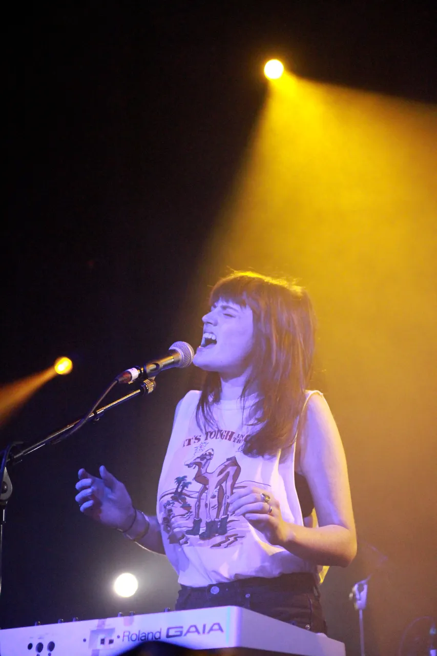 Een van de grootste successen van de voorjaarseditie van London Calling: de Canadese eenmansact Grimes. De zaal puilde zeldzaam uit, en dus is hier een spin-off: Tops. Een act op Arbutus, het label van Grimes uit Montreal. Het verhaal gaat dat ze zelfs wonen in hetzelfde pand, een creatief bolwerk genaamd Le Brique. En dus wachten we vol verwachting vooraan op het meisje in een mouwloos 'It's tough in the Gulf' 90s relikwie, plus haar drie wat gezichtsloze bandgenoten.