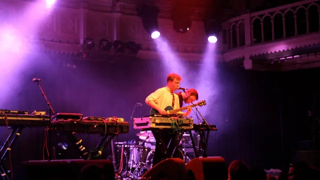Op het podium doet het duo veel live, wat ze onderscheidt van het gros van de elektronische acts die statisch vanachter de apparatuur opereren. Dankzij de opstelling, de instrumentwisselingen en de live-drummer ziet het er redelijk dynamisch uit. Met het nieuwe album op zak is behalve het repertoire ook het palet vergroot. Mount Kimbie weet in Paradiso prima de zelfverkozen sfeer neer te zetten.