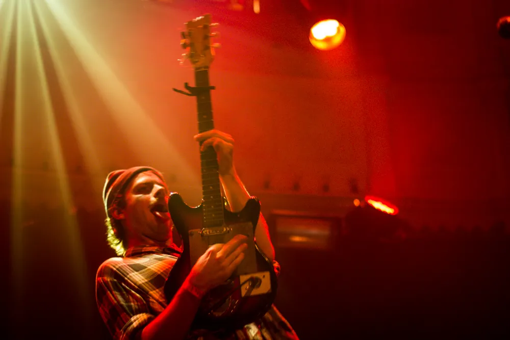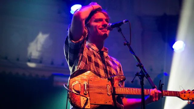 Mac DeMarco maakt muziek om dronken op te worden: sleazy gespeelde rock 'n roll met aalgladde, valse licks en een gitaar die kapotter dan kapot is. DeMarco bespeelt 'm vandaag met verve, zijn tong constant viezig uit de mond gehangen, tussen dat flinke spleetje in zijn tanden door. Hij is sowieso de koning van de gekke bekken, van de liedjes over goedkope sigaretten, over dronken nachten en vooral die ene in het bijzonder, waarin hij poedelnaakt een drumstok in zijn achterste stak terwijl hij U2 zong, wat op YouTube belandde en waar zijn moeder razend van werd. Vaak vertelt Mac tijdens shows de anekdotes die als een naar geurtje aan de liedjes kleven. Vandaag niet. "Sorry voor m'n stem", rochelt hij grijnzend. Geen biertje in de hand, maar een flesje water. Het is de een-na-laatste show van de tour, verontschuldigt hij zich. De vierkoppige band leefde waarschijnlijk net ietsje te hard, en ze dronken ongetwijfeld evenveel blikken bier als het aantal kilometers dat ze aflegden. Dat eist zichtbaar zijn tol.