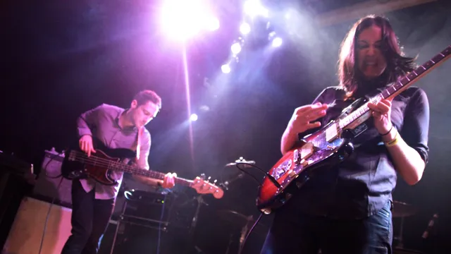 Luid gejuich in de zaal. Een samenraapsel van oerkreten eigenlijk. De jongedame die het publiek zojuist nog aandoenlijk welkom heette, gaat flink tekeer op haar elektrische gitaar. Ze ramt op de snaren en iedereen staat met grote ogen te kijken. Deze stemmingswisseling zag niemand aankomen.
