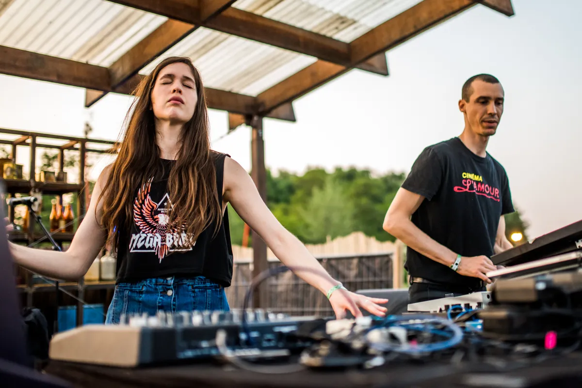 En dat terwijl Lente Kabinet een festival is dat ook een beetje mag prikkelen en irriteren. Kijk naar Interstellar Funk, de resident van De School die ieder jaar weer dieper en dieper lijkt te graven. Vandaag draait hij tracks met huilende wolven, hij weet de meest ronkende D.A.F.-plaat als hit in zijn set te stoppen en brengt EBM en industrial dwingend en donker. Kijk naar Essaie Pas, het duo met de Canadese Marie Davidson dat het ene moment zo grimmig funky klinkt als Factory Floor, en het andere moment horror-italo met een lekker kitscherig geschmier brengt. ‘Lights out’, scandeert ze, alsof ze daarmee het ondergaande zonnetje kan wegjagen. Echt druk is het er niet, maar iedereen staat er als een bezetene te dansen.