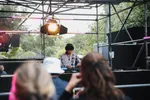 Indiepop ja. Dat is wat er te horen is op de Aster, het kleine nieuwe podiumpje midden op het terrein waar de hele dag alleen maar live bands spelen: drum-synth-dance-jazz-duo Lander & Adriaan sluit er af, Baby Berserk staat op de bill, en Tienson staat er ’s middags al vroeg. ’s Nachts is hij percussionist van Jungle By Night en in het weekend soms ook dj, maar tussendoor heeft hij een zonnige nieuwe solocarrière gelanceerd met het heerlijke ‘Wind In De Zeilen’. Zo blijkt-ie meer coole liedjes te hebben, een weird 7/8 popnummer bijvoorbeeld, en wavey eighties synthpop en balearic waarover hij loom liefdesliedjes rapzingt. Geinig, maar niet dansbaar genoeg voor Lentekabinet en hij lijkt ook wat zenuwachtig te worden van het zachte volume. Daar heeft Parker Fans even later gelukkig geen last van: het veldje stuitert vrolijk mee op de indie boogie en breakbeats van het Amsterdamse trio.