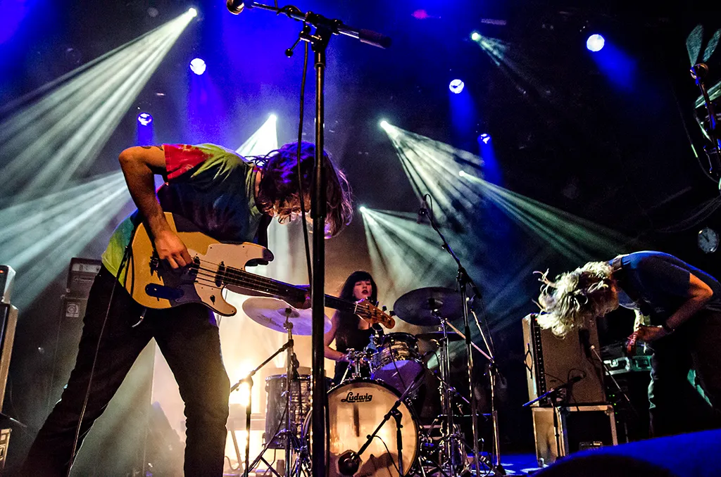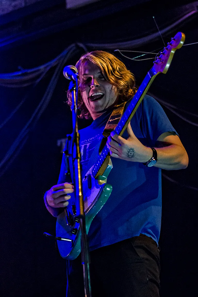 Juist in die enorme rij bands van vanavond is volstrekt helder wat de kracht van Ty Segall is. Punkrock en garage gaan nooit verloren, dat weet iedereen. Altijd ontstaan er weer nieuwe kleine bands die met drie akkoorden en een hoop bier een sensatie kunnen vormen. Maar Ty Segall is zoveel meer dan dat. Hij is een geweldige gitarist met inmiddels een rijk oeuvre. Hij heeft langzamere rocksongs met een heavy sound (bijv. nieuwe nummer Thank God For Sinners), soms ligt het tempo juist razend hoog (hoogtepunt You're The Doctor), hij gebruikt soms hardrockriffs, hij soleert dubbel met zijn tweede gitarist, laat de feedback gieren, zoekt de groove, alles vanuit een garagerockperspectief. Het is technisch en beweeglijk, maar ook volstrekt rock 'n roll. Zijn stijl is heel energiek, alsof hij er voortdurend lucht onder laat komen, alsof de twee gitaristen elkaar omhoog stuwen. Al zoekt hij meer nog de synergie met bassist-wonderkind Mikal Cronin, zelf een goede liedjesschrijver en op het podium absoluut in het centrum van de aandacht. In de meer jamgerichte momenten zijn de blikken gericht op de coole chickdrummer Emily Rose Epstein. De vloer van Tivoli is in beweging, soms licht golvend, soms klotst het publiek tegen de rand van het podium als een zee bij stormvloed. Wat een sensationele sfeer hangt hier. Alles wat garagerock goed maakt en wat vaak beter werkt op een klein dan op een groot podium.