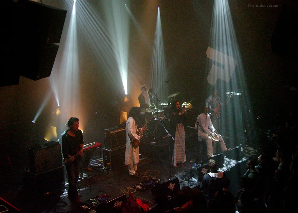 Van een geheel andere orde is Tamikrest. Deze Malinese band mengt Westerse rock met traditionele Toearegmuziek en een scheutje dub, reggae en psychedelica. Het resultaat is bezwerende woestijnblues. Het is aanvankelijk even wennen aan de teksten in het Tamasheq, de taal die door de Toeareg wordt gesproken, en de enigszins stroeve performance. Maar het is net als bij de fakir die een slang uit zijn mandje fluit: hypnotiserend. Het duurt dan ook niet lang voordat het hele publiek in trance meedeint.
