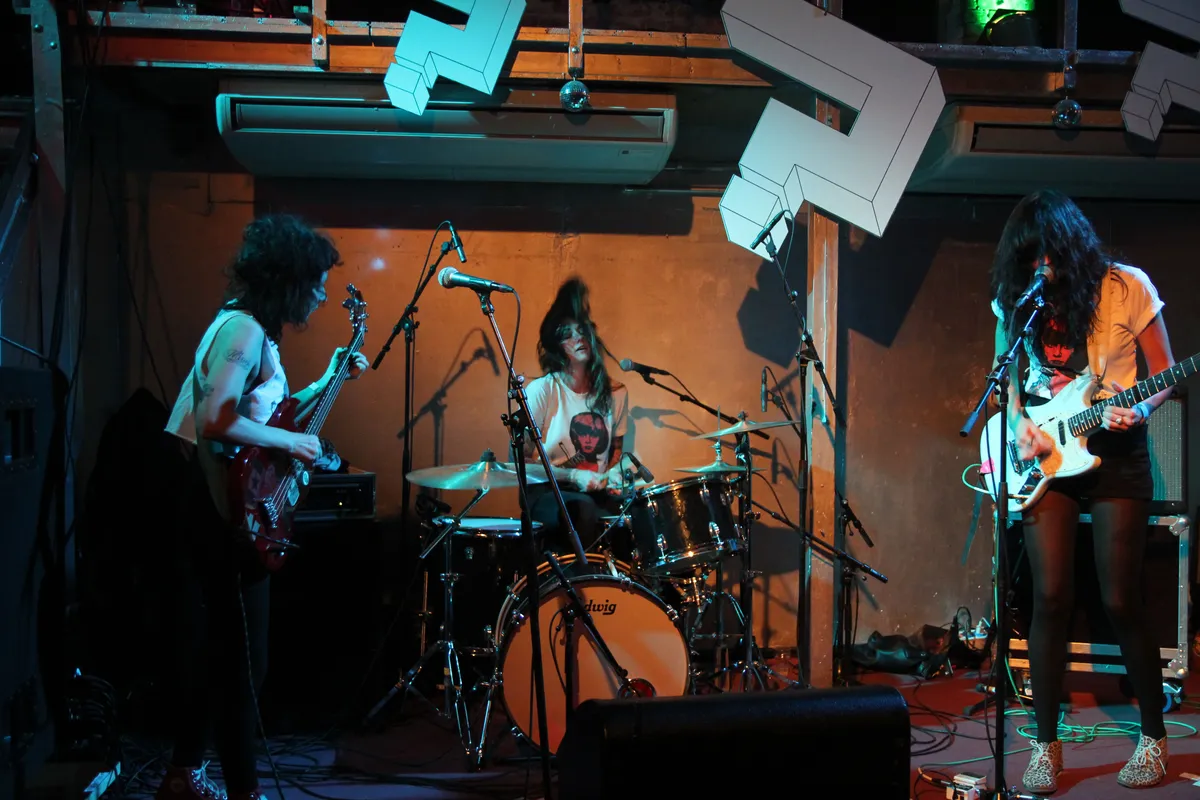 Drie dames met tatoeages en zwart haar op het podium in gematchte outfits, notabene met hun eigen bandshirtjes aan. Het begon als een grap voor een feestje, mensen vonden het leuk dus gingen de dames er maar mee door. Als het volume op 10 staat, valt het iets minder op dat de dames echt niet kunnen spelen. Bij de stukken met rustig gepingel stoort het. Tel daarbij op het kinderlijke stemmetje van de zangeres/gitariste. De drumster is een heuse verschijning vol tattoos en een doorleefde stem die doet denken aan Guano Apes in de ruige stukken. Vandaag is ze nog jarig ook. 'Let's play a game called guess my age,' ze zegt 36 te zijn. Dat zie je er niet aan af. The Coathangers zijn inmiddels acht jaar bezig. Dat hoor je er niet aan af en misschien is het tijd om iets anders te gaan doen.