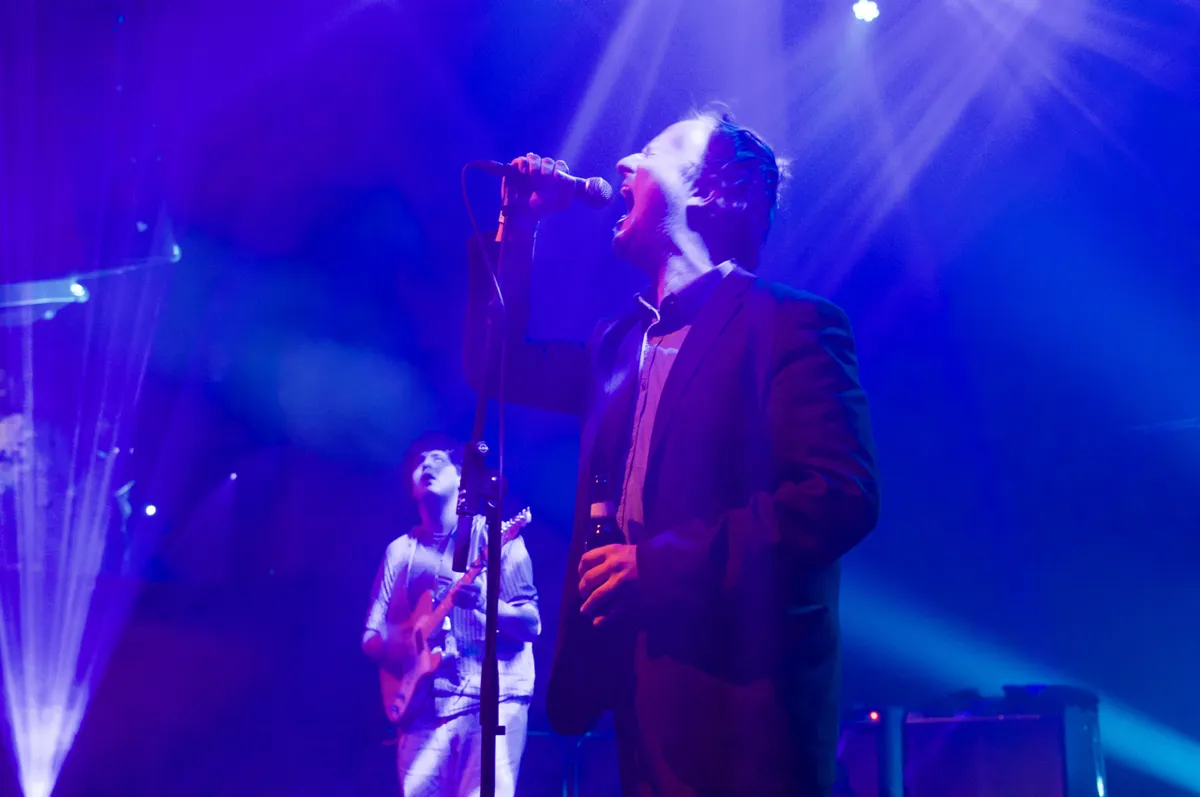 We vallen in bij Protomartyr, de postpunkers uit Detroit die onlangs de sterke tweede plaat The Agent Intellect uitbrachten. Anti-helden te over op Le Guess Who?, maar tegen Protomartyr kunnen ze niet op. Met een sixpackje Amstel Light komt frontman Joe Casey droogkomisch het podium op lopen. “Tja, het was gratis. Don’t judge’, zegt hij tegen de verbaaste eerste rij. Hij zet er keurig drie op een rij neer en zal tijdens vrijwel het gehele optreden een flesje bier in zijn ene hand houden en de microfoonstandaard in zijn andere, terwijl hij zijn monotone bariton laat galmen. Curieuze frontman, zo in zijn slecht zittende maatschappijleraarpak heeft hij wel wat weg van Hamilton Leithauser. De postpunk van Protomartyr - met veel nadruk op de nieuwe songs - klinkt hier messcherp zoals het hoort, maar het publiek is nog wat tam aan het begin van de avond. (Sjoerd Huismans)