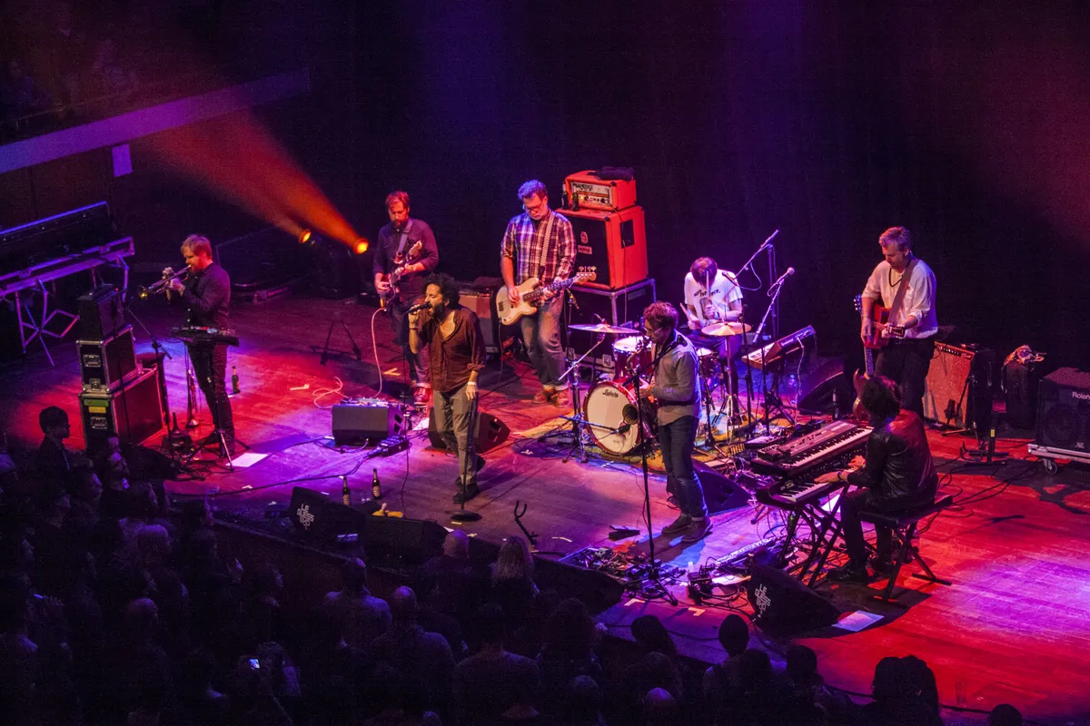 Na een solotour en een korte solotour met supergroep The New Pornographers staat Dan Bejar weer op de planken met zijn eigen band: Destroyer. De schuchtere Canadees heeft een flink wat ondersteuning meegenomen. Twee gitaristen, twee blazers, drummer, bassist, twee biertjes en een flink glas whiskey.