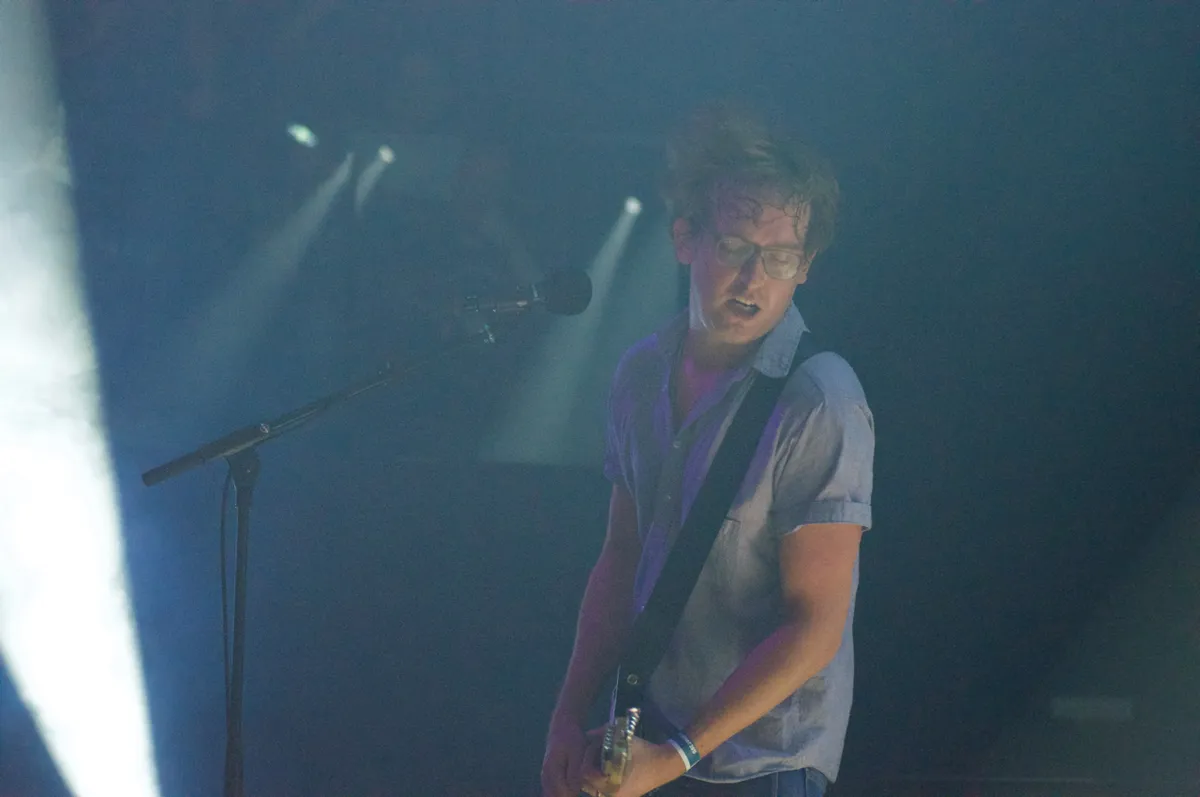 “Beetje awkward om na Metz te spelen. Het zijn zulke goede vrienden van ons en ze hebben zo’n zaal natuurlijk al compleet gesloopt”, zegt Viet Cong-frontman Matt Flegel tegen het publiek. “Helpt het als ik een beetje zo doe?”, voegt hij eraan toe terwijl hij de wild rockende bewegingen van de Metz-jongens nadoet. “Ik hoop dat ze niet meer in de zaal zijn.” Maar stiekem is zijn eigen optreden nog intenser dan dat van het geroutineerd fantastische Metz.