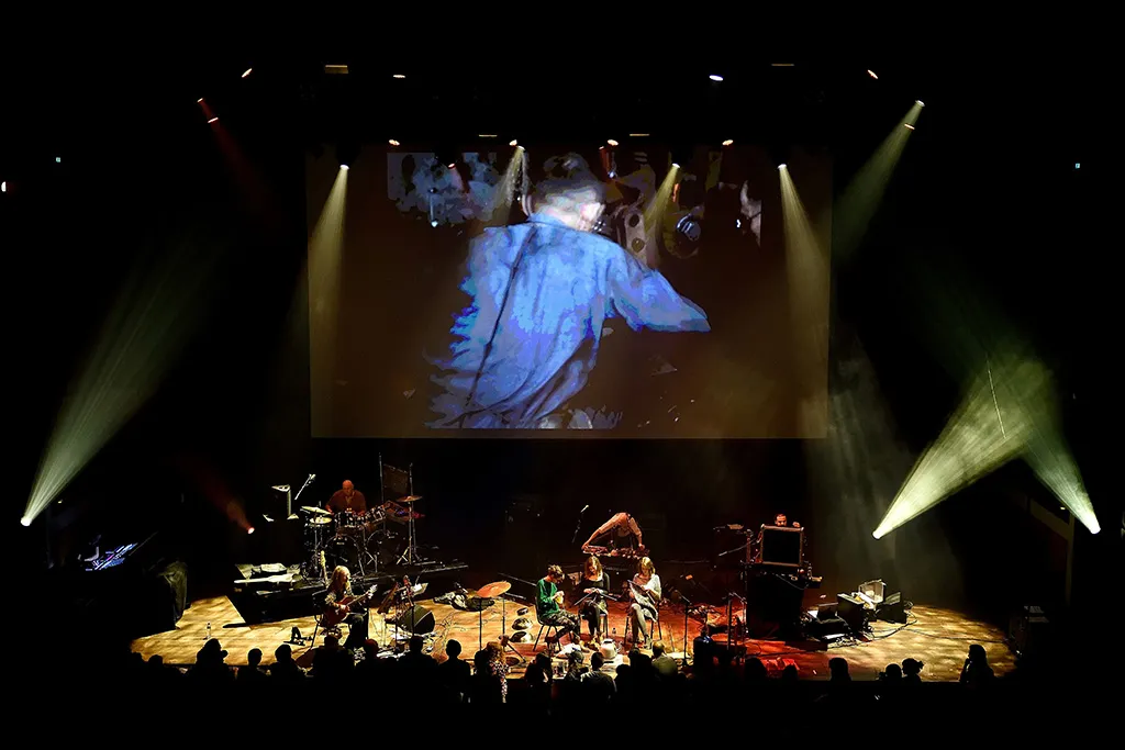 Vooral Peron, sinds 2004 weer herenigd met Diermaier, trekt alle aandacht naar zich toe: met improvisaties op vervormde blaasinstrumenten, meertalige zang, groovende baspartijen en naargeestige vocale samples bepaalt hij het geluid. Die samples zijn overigens lekker overzichtelijk genummerd op zijn laptopscherm, zodat een groepje bezoekers voorin zich waagt aan letterlijke verzoeknummertjes. Er zitten allerlei goede details in de sound: als Peron een akoestisch nummer speelt bootst een ander bandlid de ruis van een stoffige oude plaat na met een stuk plastic.