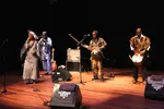Het Belgische gezelschap Stuff. heeft afgelopen jaar op nogal wat festivals een grote indruk achtergelaten. Dat betaalt zich uit in een volle zaal en een publiek dat al joelt voordat er ook maar een noot gespeeld is. De opwinding is best te begrijpen. Het zijn vijf goede muzikanten. De drummer smijt moeiteloos met tempowisselingen, de bassist legt een opzwepend fundament. En zo vaak zie je ook niet zo’n elektronische blaasinstrument. Maar zo spannend het op papier allemaal klinkt, zo flauw is de act. Slim bedekt door een flinke jazzfusion- en blij vlagen progsaus, blijkt Stuff. in de praktijk een virtuoze feestband. Het zijn vooral de potsierlijke covers van Massive Attack, Biggie Smalls en Public Enemy waar het feest losbarst. Met de lelijk galmende scratches als dieptepunt. Stel dat je nog eens een bruiloftsband zoekt, maar bang bent dat je oom die in de jaren zeventig is blijven hangen en die vriend aan het conservatorium hun neus ophalen voor de standaard coverband? Boek Stuff.