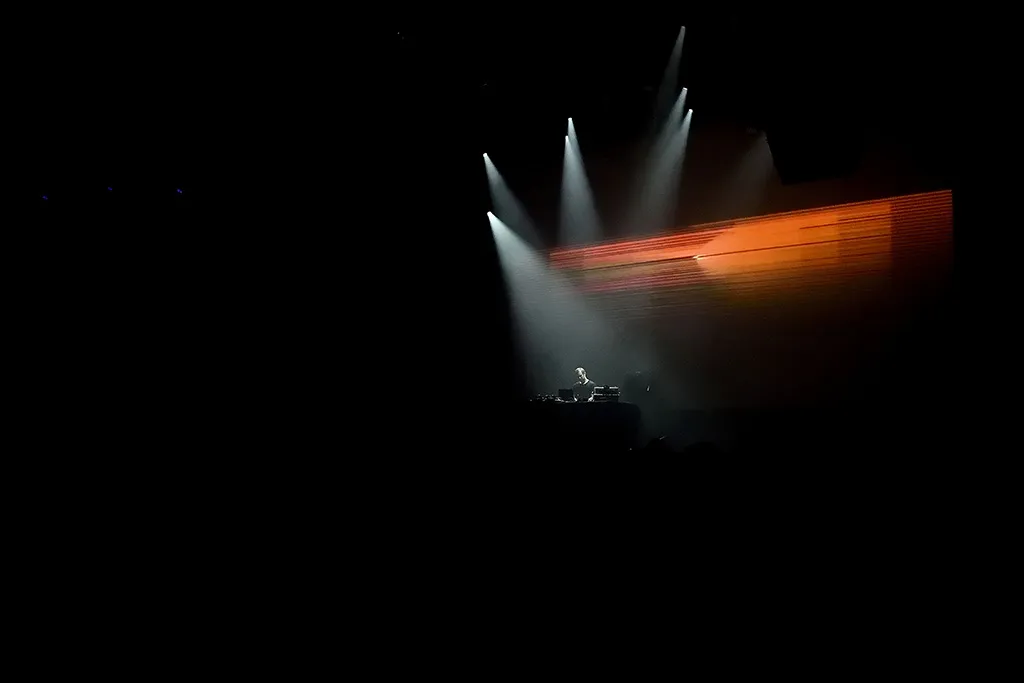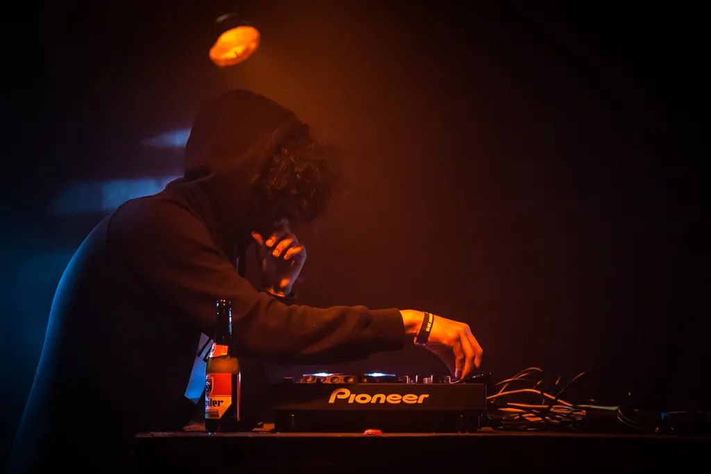 Zo bekeken een logische boeking, maar het publiek denkt daar anders over. Het grootste deel van de set is er niet meer dan een mannetje of twintig in de Ekko. En het grootste deel daarvan heeft ook wat moeite om de aandacht er bij te houden Het is natuurlijk eigenlijk wat te vroeg, een act als deze om 21u. En als je had verwacht even een uurtje te mogen fistpumpen op enkel klappers, kom je ook bedrogen uit. Via lo-fi geknetter bouwt Huerco S alles rustig op. Als er achter de schuivende synths al een beat verstopt is, dan klinkt hij alsof hij ergens vanaf de buren komt. Ver weg, afgestompt. Op het moment dat die beat dan eindelijk naar voren komt, blijkt het Afrikaanse percussie te zijn en blijkt er precies een Afrikaanse disco-track omheen te sluiten. Even makkelijk verdwijnt die beat weer, duiken er Indiase melodieën op, knettert er wat acid, vlamt er een Arabische track en blijft er uiteindelijk een kale industriële hi-hat over. Vorige week op Nachtiville, of op een festival als Dekmantel zou precies deze set niet alleen een volle zaal trekken, maar ook een uitzinnig hoogtepunt worden. Maar zo in een lege zaal en met dit publiek, voelt het vooral wat misplaatst. Zonde. Misschien moet Huerco S volgend jaar terug komen met een avant-gardistische folkplaat op zak.