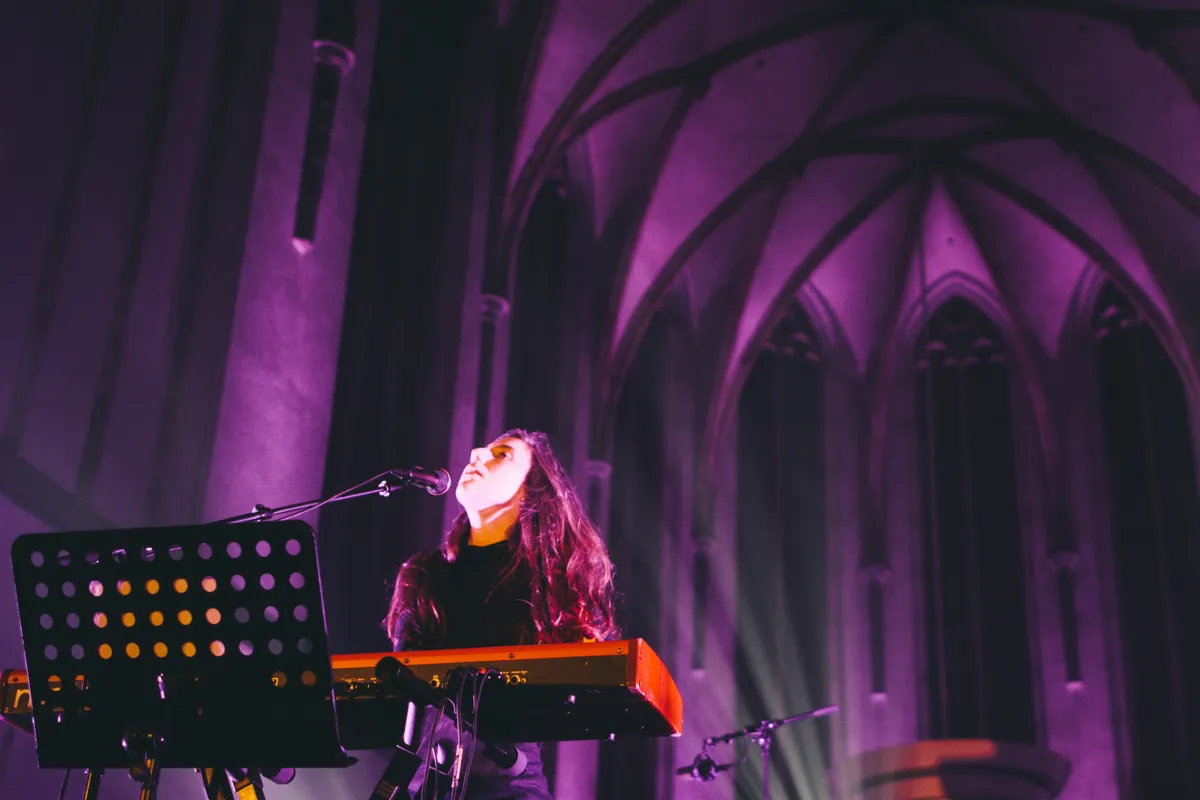 “My love, my love, I will play you softly like an ancient lute, I will whisper so only you can hear that my love has laid it’s root”, weent Holter zachtjes. Het is een wonderschoon, plechtig eerbetoon waarmee Holter haar show begint. Ze is een bijzonder logische boeking voor een fijnproeversfestival Le Guess Who?: Holter baseerde een album op de Griekse tragedie Hippolytus, werkte samen met de stokoude freakfolklegende Linda Perhacs - die vorig jaar in diezelfde Janskerk optrad - en nam een album vol met field recordings op. Kortom: geen al te gemakkelijke muziek. Haar laatste album Have You In My Wilderness is zowaar een tikkeltje toegankelijker en op bescheiden schaal een ‘doorbraakalbum’ te noemen. Dat is ook vanavond in de Utrechtse Janskerk te zien, al een halfuur voor het optreden begint zijn alle zitplekken bezet en de kerk stroomt nog veel voller.