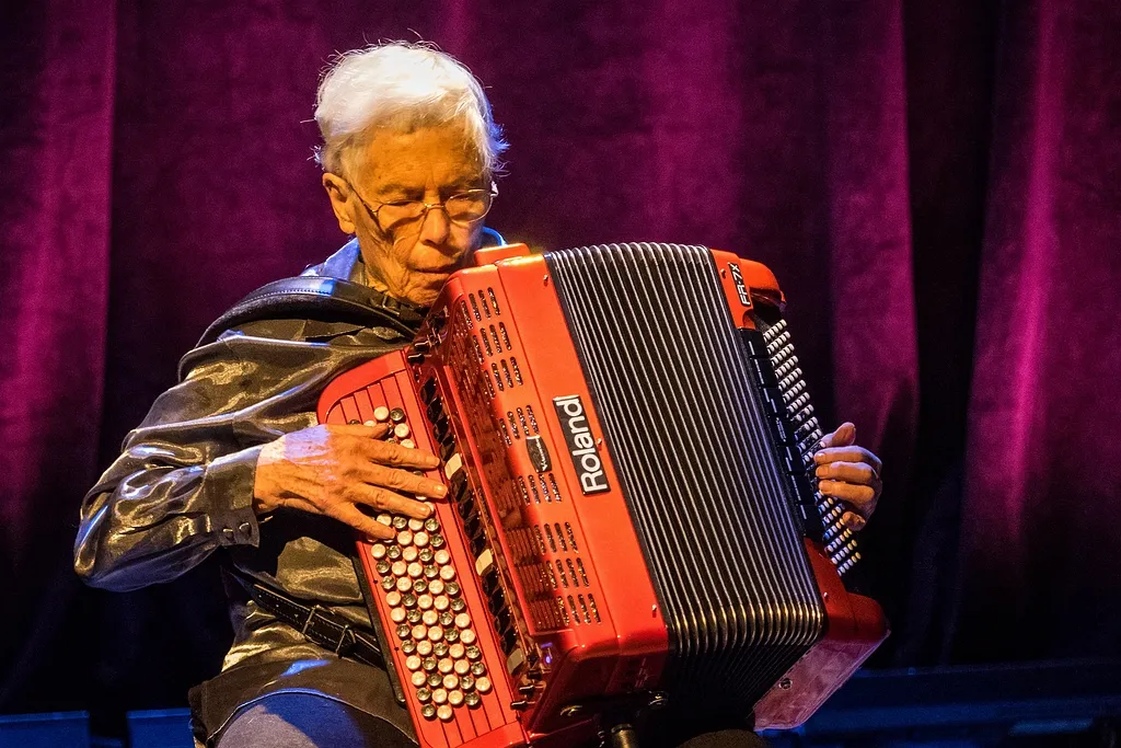 Wie achter accordeoniste Pauline Oliveros een uur melancholieke folklore zoekt heeft het mis. Goed mis. Vierentachtig is ze al en sinds de jaren vijftig is ze bekend om haar onconventionele benadering van muziek, of geluid eigenlijk. Haar shows zijn een soort collectieve klankmeditatie. Deep Listening, noemt ze het. Klinkt als geneuzel? Tja, dat is het ook wel. Het is vanavond luisteren naar een geluidtheoreticus op veldwerk.