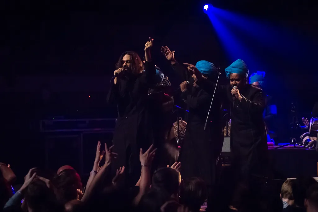 Vlak voordat de show begint en het zaallicht nog aan is, klinkt er opeens geroezemoes achterin de zaal. Op de trappen van de grote zaal staan plotsklaps de blazers van de Rajasthan Express, om het vuur alvast aan te steken. Het blijkt een vuur dat het daarop volgende uur niet meer uit gaat. Vanaf de eerste tonen, gebeurt er iets unieks. Het hindert niets dat Greenwood de eerste paar nummers op gitaar nauwelijks te horen is, ondanks dat hij zich zichtbaar in het zweet speelt. De salvo’s vraag en antwoord tussen de percusionisten en zangers die vanuit kleermakerszit het uit hun tenen laten komen, doen al genoeg. Soms wordt er even gas teruggenomen, heeft de oudste percussionist even de tijd om aan zijn snor te draaien, en pakt Tzur er een dwarsfluit bij om wat zuurstof in de zaal te pompen. Maar als daarna de blazers opschakelen, ontploft de zaal keer op keer. De uitspraak dat je 'niet stil kan blijven staan' tijdens een optreden voelt bijna altijd als een cliché, maar hier is het letterlijk zo. De vloer deint zo hard op en neer, dat zelfs als je de voeten stug op de grond houdt, je ritmisch centimeters op en neer beweegt met de muziek mee.