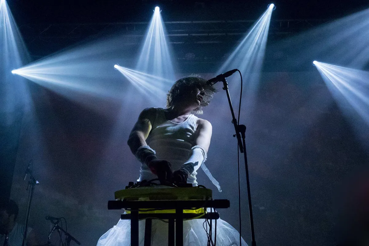 Gelukkig is er energie te over bij de laatste twee acts in De Helling. Op het podium tenminste: terwijl Liars-frontman Angus Andrew als een razende tekeergaat, blijft de temperatuur in het publiek behoorlijk lauw. Andrew is het laatst overgebleven originele lid van dance-punkband Liars, inmiddels een trio. Hij buldert over het podium in een witte tutu en satijnen handschoenen. De beste albums van Liars liggen inmiddels alweer een paar jaar achter ons, wat misschien de hoge gemiddelde leeftijd (en dus het gebrek aan moshpits) verklaart. Liars maalt er niet om, en speelt een set vol directe, rauwe punk-energie.