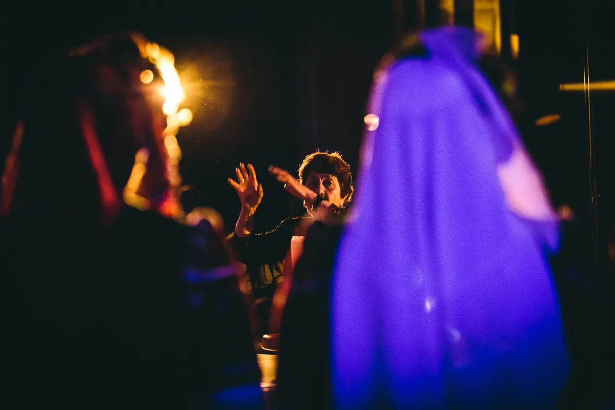 Jammer, want de Bulgaarse vrouwen beginnen Le Guess Who? 2017 direct met een hoogtepunt. In traditionele jurken met borduursels, gouden muntjes en bloemen in het haar verschijnen de zangeressen op het hoogkoor. Koorzang is een vak apart: je hebt niet de houvast van een begeleidend instrument, je bent volledig afhankelijk van elkaar en je eigen stem en oren. Als je het goed doet, weet de luisteraar niet of er nou één of tien of vijftig stemmen klinken. Indrukwekkend dus, dat Les Voix Bulgares schijnbaar moeiteloos de lastige ritmes en harmonieën samen weten te weven. Dissonante stemmen zingen tegen elkaar in, en lossen dan weer op in euforische Pet Sounds-achtige harmonie, gevolgd door een jolig uitgeroepen 'Jieeee!'. Het publiek in de kerk is muisstil, en lost bij elke plechtige buiging van het koor een uitbundig applaus.