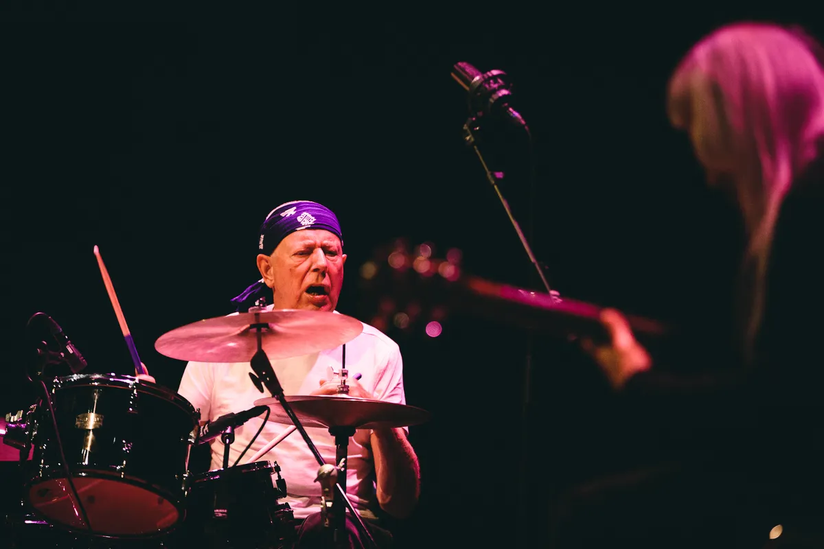 Terwijl de Bulgaarse dames aan hun tweede helft beginnen, heeft festivalcurator en jazzdrumlegende Han Bennink in de Hertz noise-muzikant Keiji Haino uitgenodigd. De Japanse avant-garde muzikant – wuivende grijze lokken en forse zwarte zonnebril – beukt op een elektrische gitaar met een basketbal, en krijst af en toe in een microfoon. In opperste concentratie laat hij zijn gitaar soms snerpend atonaal zingen, en speelt dan ineens iets dat in de verte bijna op een fifties rock 'n roll riff lijkt. Bennink houdt hem scherp in de gaten, en speelt op hem in met onnavolgbare ritmes en jazz-shuffles vol schijnbewegingen. Samen zitten ze op een onzichtbare golflengte, alsof ze signalen oppikken uit een andere dimensie die wij gewone stervelingen niet kunnen waarnemen.