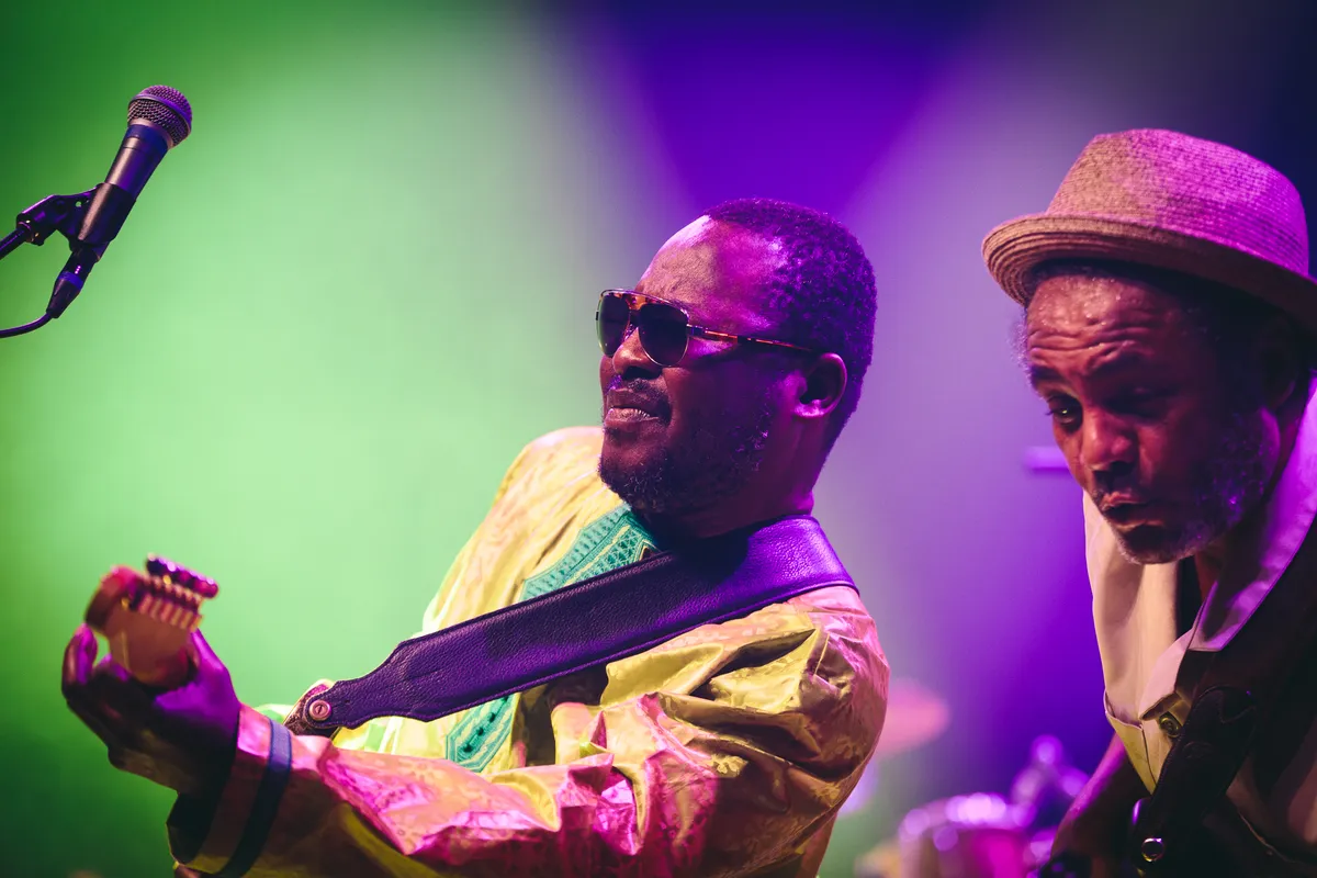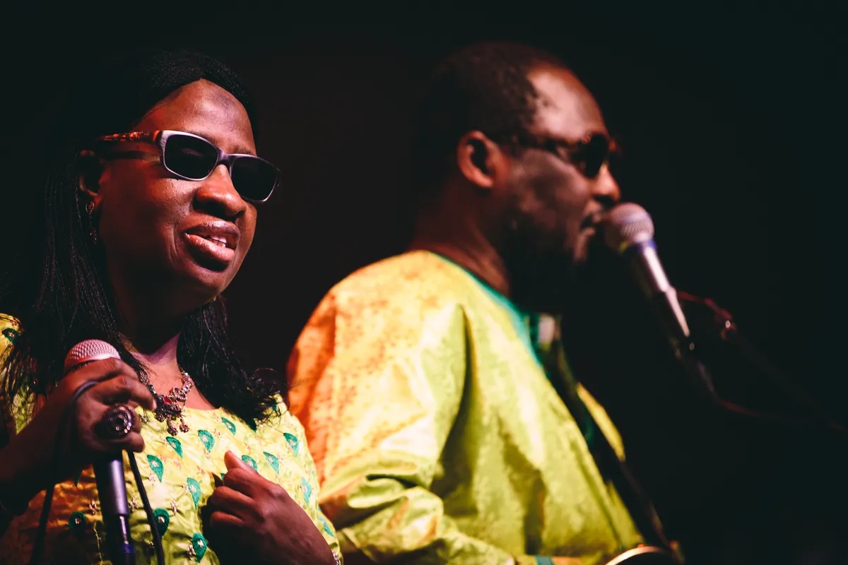 Zo hebben we er halverwege de eerste avond al een aardige dwarsdoorsnede van de diversiteit van Le Guess Who? op zitten. Dat is dan ook waar het publiek voor komt: bezoekers vertrouwen erop dat het festival uit al die muzikale uithoeken het beste weet te selecteren. Dat vertrouwen wordt deze editie nog eens extra op de proef gesteld: voor het eerst staan er op vijf prominente slots geen namen maar vraagtekens op het programma. Wie zouden het zijn? Een van de indie-royalty acts die hier vaker hebben gestaan? Destroyer? Future Islands? Ze zijn in de buurt, maar zouden niet echt recht doen aan de avontuurdrift van Le Guess Who?. Wie zijn het wel? Op vrijdagavond in de Grote Zaal verraadt de set-up - vooral de congo’s op links - een Afrikaanse band, en dat blijkt ook zo te zijn. Onmiskenbaar: Amadou & Mariam, het blinde paar uit Mali. Het publiek weet in eerste instantie even niet zo goed wat het aanmoet met de opzwepende gebaren van de muzikanten, maar als de zangers zelf eenmaal opgekomen zijn is het vuur binnen twee nummers aan. Amadou & Mariam is voor Le Guess Who? een nogal frivole act, virtuoos en ronduit luchtig. Weer eens wat anders dan de bloedserieuze start van het festival vorig jaar.