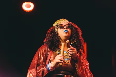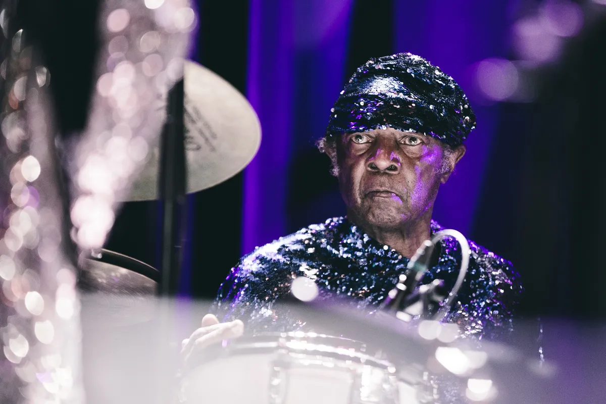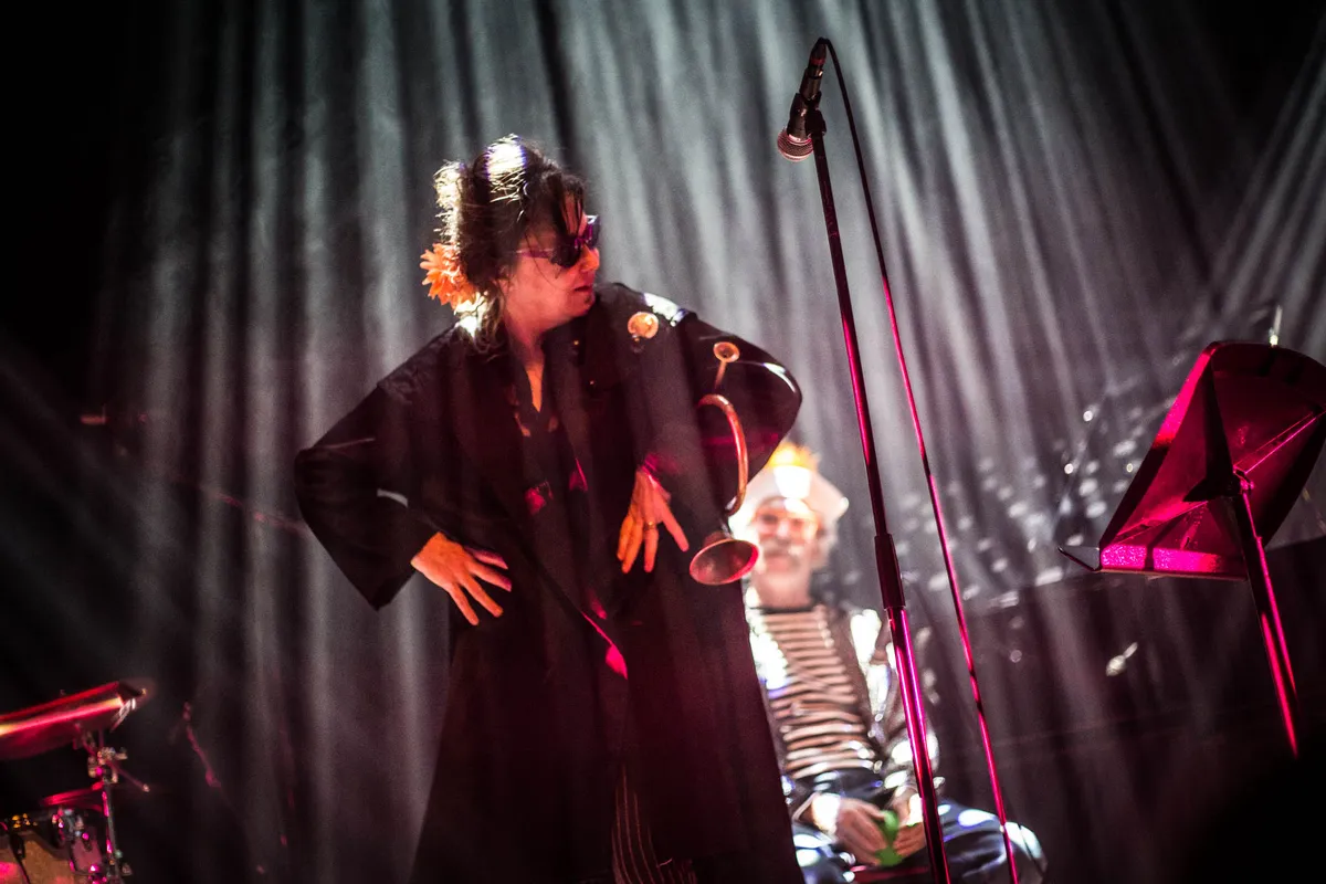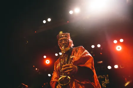 Dan Sun Ra Arkestar, dat laat op de avond in de Ronda speelt: hun bandleider verruilde al bijna een kwarteeuw geleden het tijdelijke voor het eeuwige, maar zijn orkest slaat nog altijd een brug tussen de aarde en de ruimte. De intergalactische weirdo’s zijn natuurlijk niet meer zo baanbrekend als in de jaren ’50 en ’60, maar voor velen op Le Guess Who? zal dit de eerste keer zijn dat ze de groep in actie zien, en het is een genot om naar te kijken. De 93-jarige bandleider Marshall Allen gaat tekeer op een soort spacey elektronisch blaasinstrument, de contrabassist beukt met strijkstok op zijn instrument in terwijl hij een scat vocal-solo doet en wanneer de band een bedwelmende 5/4-groove speelt, schuift de stokoude saxofonist alles aan de kant om een stel formidabele radslagen en een bizarre dans te laten zien.
