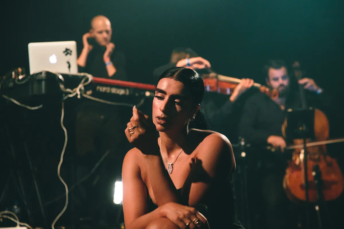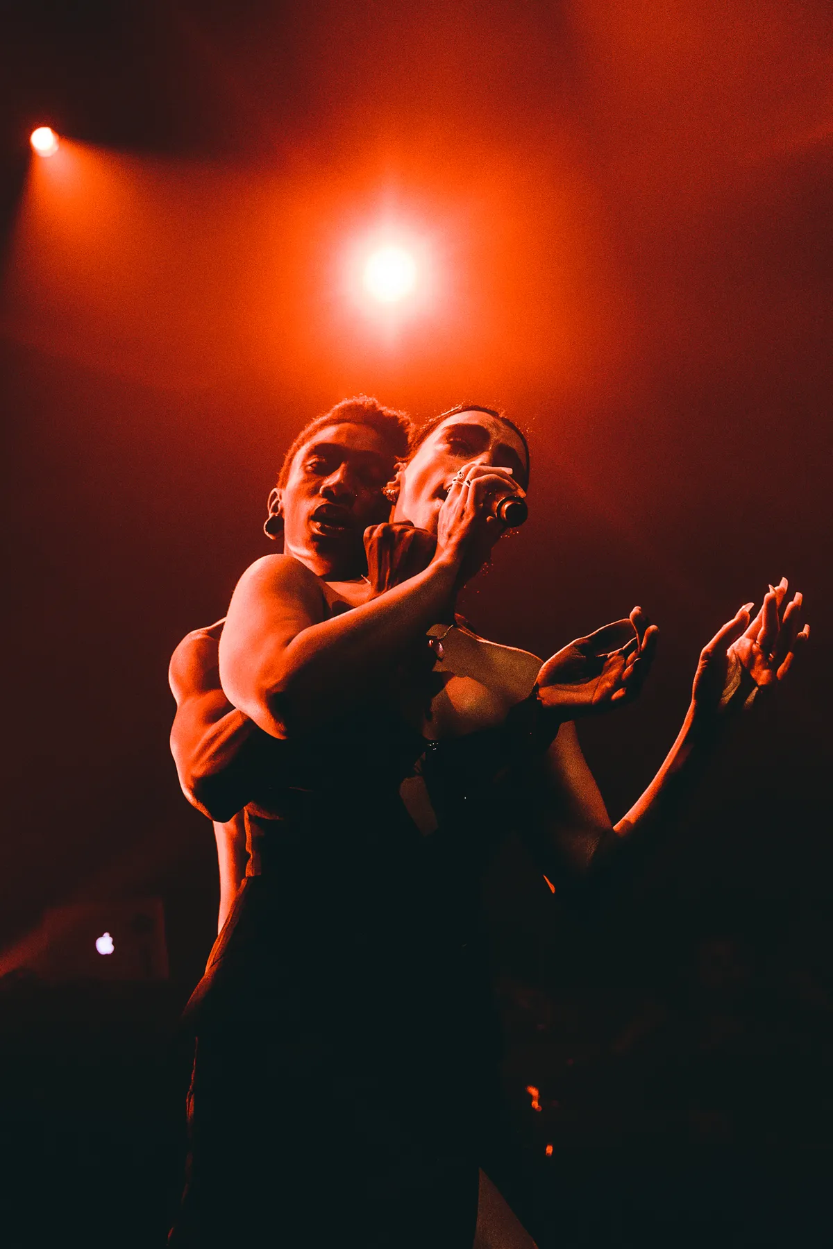 Als een angstige straathond vlijt hij zich aan haar voeten, sidderend wanneer ze verzucht toch echt een mens te zijn. De danser lijkt haar te aanbidden, en tegelijkertijd angstig voor haar toorn. Zo hee, wat is de choreografie van Sevdaliza’s nieuwe show waanzinnig. De Rotterdamse zangeres – die de 3voor12 Award won voor haar debuutalbum ISON – opent haar Europese tour op Le Guess Who? met een hele ambitieuze performance: een strak geregisseerde lichtshow, het Red Limo strijkkwartet en vooral die danser Gil. Hij heeft een waanzinnige controle over zijn lichaam, slaat zichzelf tegen de grond om vervolgens weer gewichtloos op te veren. Het ene moment straalt hij pure doodsangst uit, het andere verandert hij in een kwaadaardige geest die over haar schouders meekijkt, haar betovert en zelfs letterlijk draagt. Sevdaliza likt er wellustig haar lippen bij. Wanneer ze zingt dat ze hem alleen lijkt te kunnen liefhebben in haar dromen, springen de vlammen bij beiden in de ogen. Wanneer ze samen volledig in elkaar zakken, valt de muziek weg en blijft het een eeuwigheid doodstil in de zaal. Zodra de strijkers aanschuiven en Gil even van het toneel verdwijnt, zakt de spanning behoorlijk weg, maar op de beste momenten overstijgt de show haar afstandelijke moderne triphop en transformeert Sevdaliza in een buitenaardse godin. Een godin die zich laat aanbidden en alleen door iets futiels als romantische liefde laat raken wanneer ze daar zelf voor kiest. Wow.