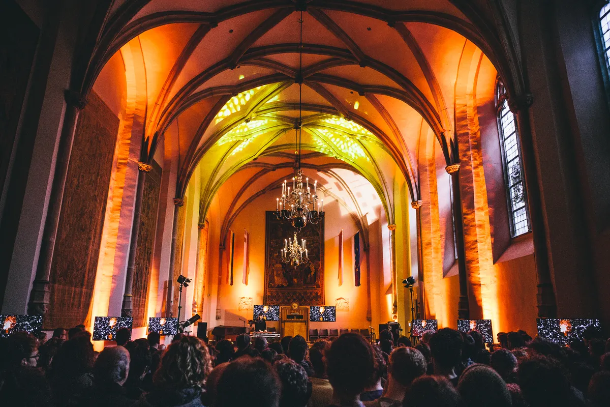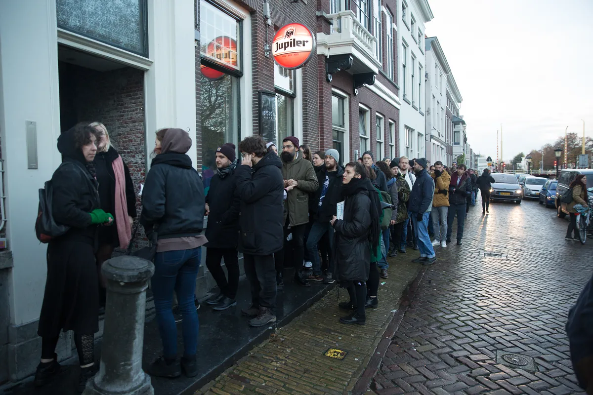 Althans, als je een van de gelukkigen was die erbij kon zijn. Er staat namelijk nogal een flinke stoet mensen door de lange gangen van het Academiegebouw, het staartje van de rij eindigt buiten naast de Domkerk met nog eens een stuk of vijftig man. Terwijl Le Guess Who? zich steeds dieper en dieper in de ‘serieuze muziek’ vastbijt en in allerlei niches terecht komt, trekt het meer en vooral ook fanatieker publiek dan ooit. In de gangen hoor je mensen in het Zweeds de show van Sevdaliza bediscussiëren, bij de stand van The Village een ouder stel dat vanuit Zuid-Amerika is ingevlogen over het programmaboekje. Er is geen ander festival ter wereld dat zo’n bijzonder programma neerzet, lijkt wel. Maar daardoor worstelt het festival ook met nogal wat capaciteitsproblemen: wil je echt een show zien die toevallig in een wat kleiner zaaltje geprogrammeerd staat, dan kun je beter zorgen dat je minstens een halfuur voor aanvang voor de deur staat. Van de ene naar de andere zaal zappen is er niet meer bij.