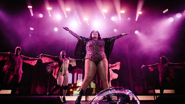 ’Wie van jullie is hier ook voor de zelfhulp?’, vraagt Lizzo bij ‘Jerome’, een song over foute mannen die keihard de deur gewezen worden. ‘Ik ook hoor. Ik heb jullie allemaal nodig’. Ze legt haar boodschap er zo dik bovenop dat het een beetje een karikatuur wordt, maar dat past ook wel weer een beetje bij een show van dit formaat. Het verhaal dat Lizzo wil vertellen is in elk geval eenduidig: kijk jezelf aan in de spiegel, check je nagels en je krullen en zeg hardop tegen jezelf: ik mag er zijn.’