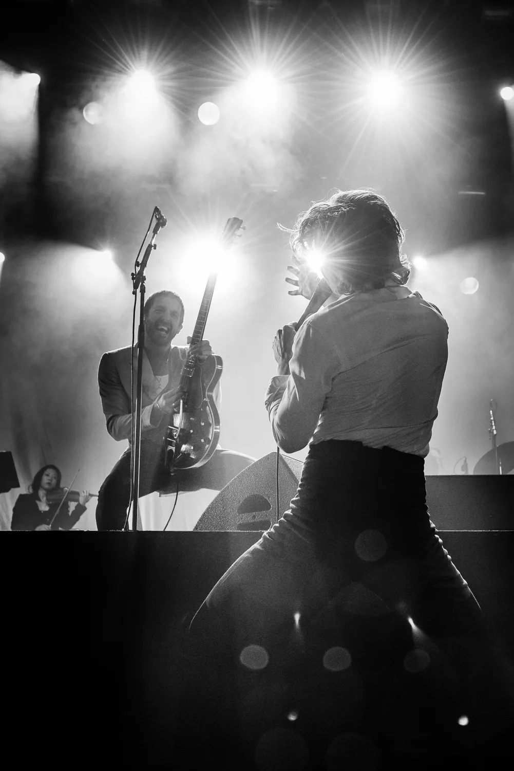 Jongens waren het nog: Britpop-wonderkind Alex Turner van Arctic Monkeys en zijn onbekende vriend Miles Kane, toen nog zanger van The Rascals. Ze maakten samen een heel volwassen plaat onder de naam The Last Shadow Puppets, met een compleet orkest. Acht jaar later staan er twee volwassen performers op het podium met een hele set nieuwe liedjes.