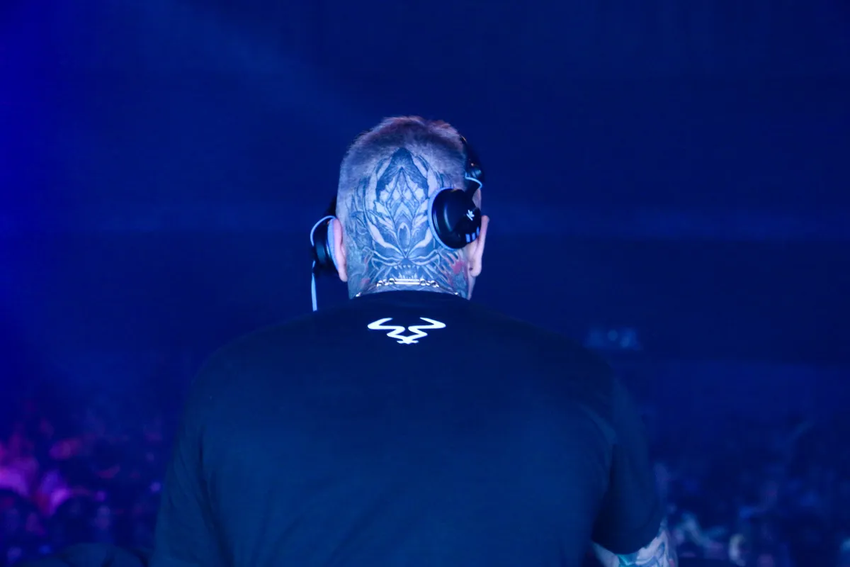In de nabijgelegen India-tent blijkt een andere (bijna-)vijftiger zijn vlucht vanuit Londen te hebben gemist. DJ Ed Rush komt niet. En dus blijft de Killbox (een nieuw drum ‘n bass project van Rush en zijn maatje Audio) vanavond half leeg. Niet dat het er veel toe doet. Audio (die een indrukwekkende tatoeage op zijn achterhoofd heeft) weert zich kranig met gepantserde amen-breaks in hyperdrive. Drop na drop veren de honderden bezwete mannen in de zaal op. De man-vrouw verhouding in de redelijk gevulde tent is zeker 70/30. Niet dat het uitmaakt. Later vannacht zal het Utrechtse Black Sun Empire de zaal vakkundig afsausen. De India is deze slotnacht niet voor tere zielen.
