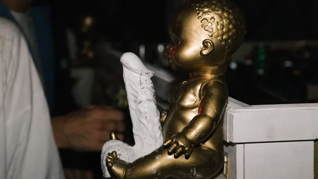 Als je de één uit, één uit-policy eenmaal doorstaan hebt, gebeurt het binnen overal. Twee meter boven de bar ligt een jongen in hotpants nonchalant met een waaier te wuiven, op de rechter speaker lacht een halfnaakte Marilyn Monroe theatraal, een dj-set van van het G-Team wordt soms stilgelegd voor shows van de meest fabulous dragqueens, een meisje deelt tissues uit voor op de dixies en ondertussen is het zo gierend heet dat je je kleren wel laag voor laag moet uittrekken. Hier is niks gemaakts aan. Niet dat een of andere feestneus bedacht heeft dat een gaybar op een festival gewoon wel even lachen is.