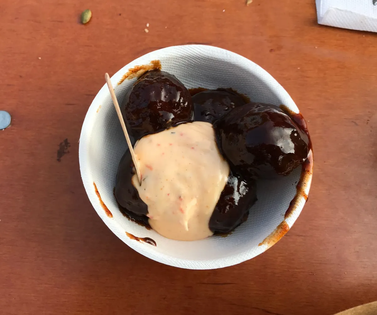 Yes! Een bakje met vijf gehaktballetjes. Juist een gerechtje om eenvoudig wat extra punten te pakken. Helaas, zo kunnen wij het ook! Niet echt bijzonder. Er hoefde niet eens geloot te worden voor de laatste.
